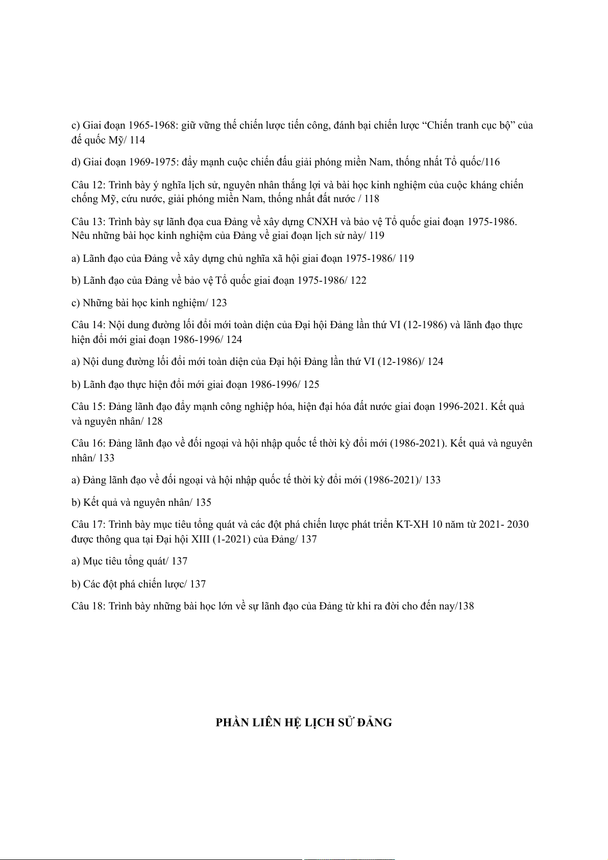 Câu 18: Trình bày những bài học lớn về sự lãnh đạo của Đảng từ khi ra đời cho đến nay/138