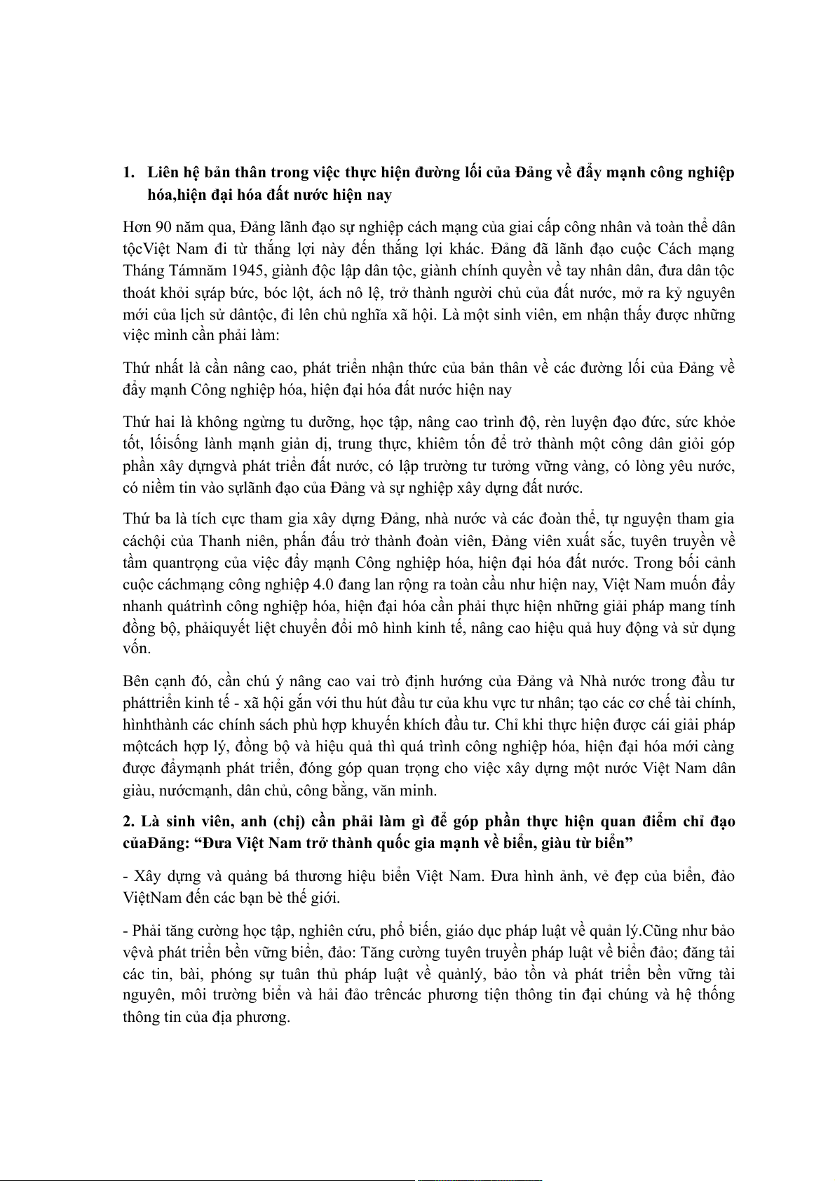 1. Liên hệ bản thân trong việc thực hiện đường lối của Đảng về đẩy mạnh công nghiệp