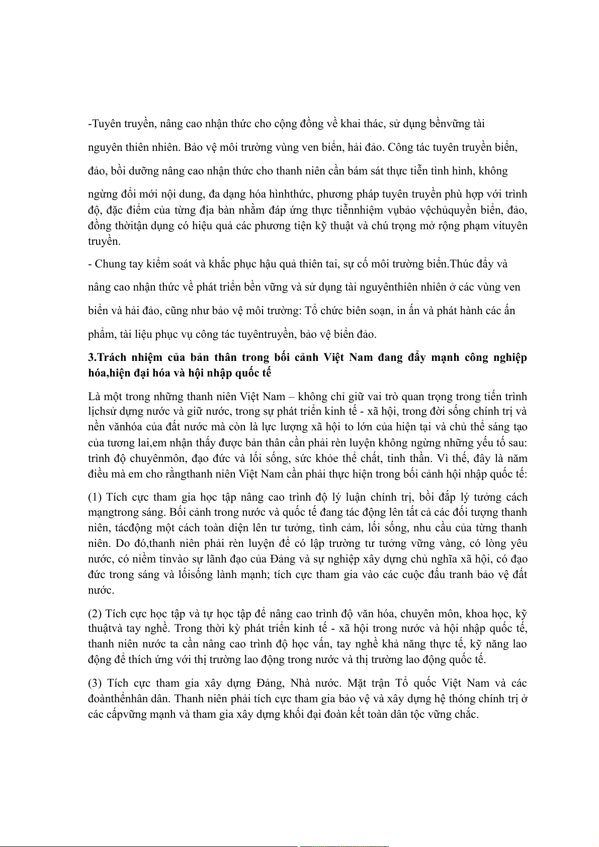viêncần nhận thức sâu sắc về vai trò và trách nhiệm của mình trong sự phát triển của đất