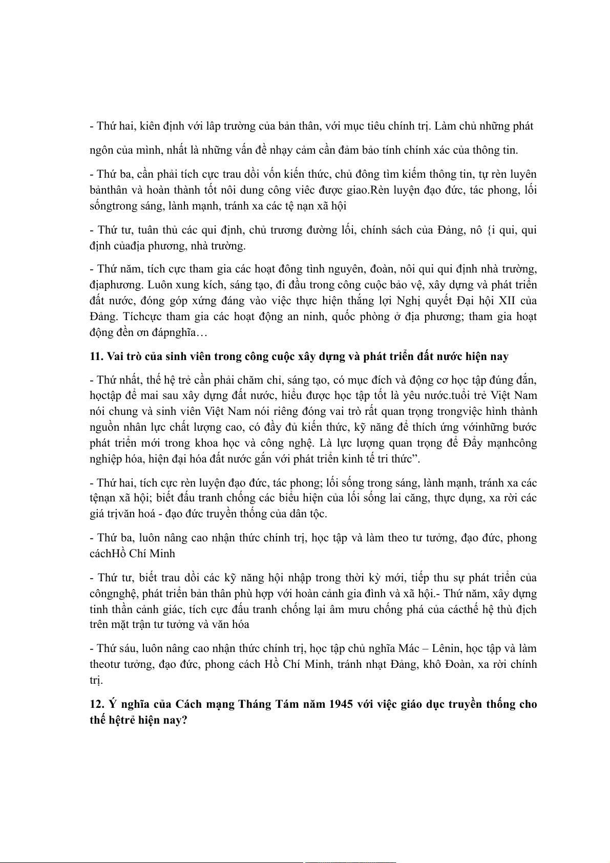 12. Ý nghĩa của Cách mạng Tháng Tám năm 1945 với việc giáo dục truyền thống cho