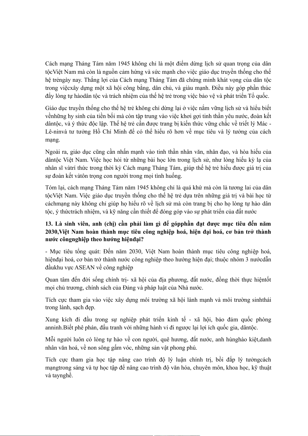 13. Là sinh viên, anh (chị) cần phải làm gì để gópphần đạt được mục tiêu đến năm