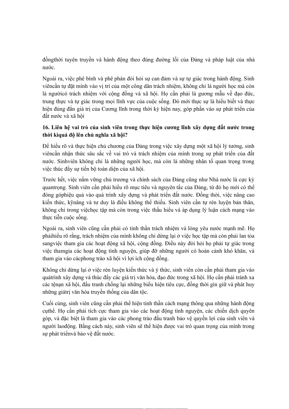 16. Liên hệ vai trò của sinh viên trong thực hiện cương lĩnh xây dựng đất nước trong