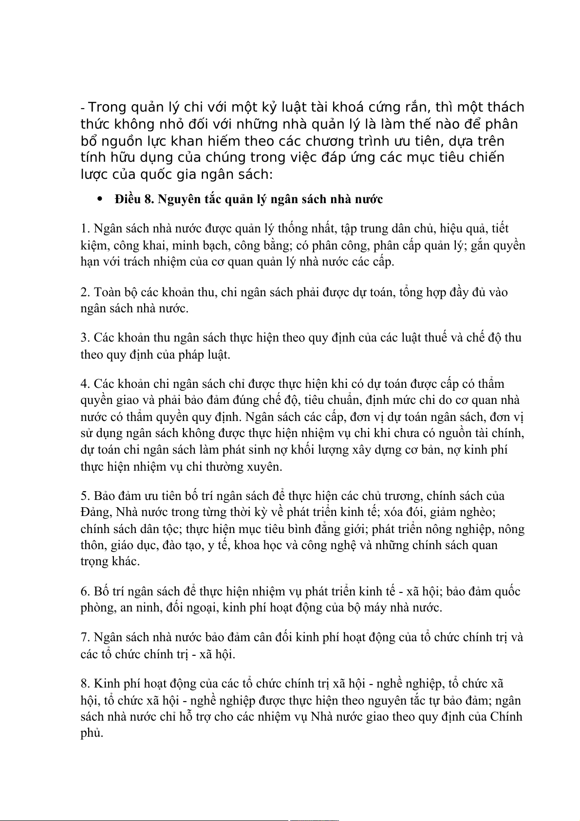 Điều 8. Nguyên tắc quản lý ngân sách nhà nước
