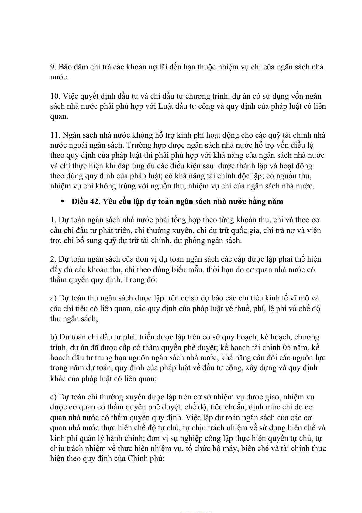 Điều 42. Yêu cầu lập dự toán ngân sách nhà nước hằng năm