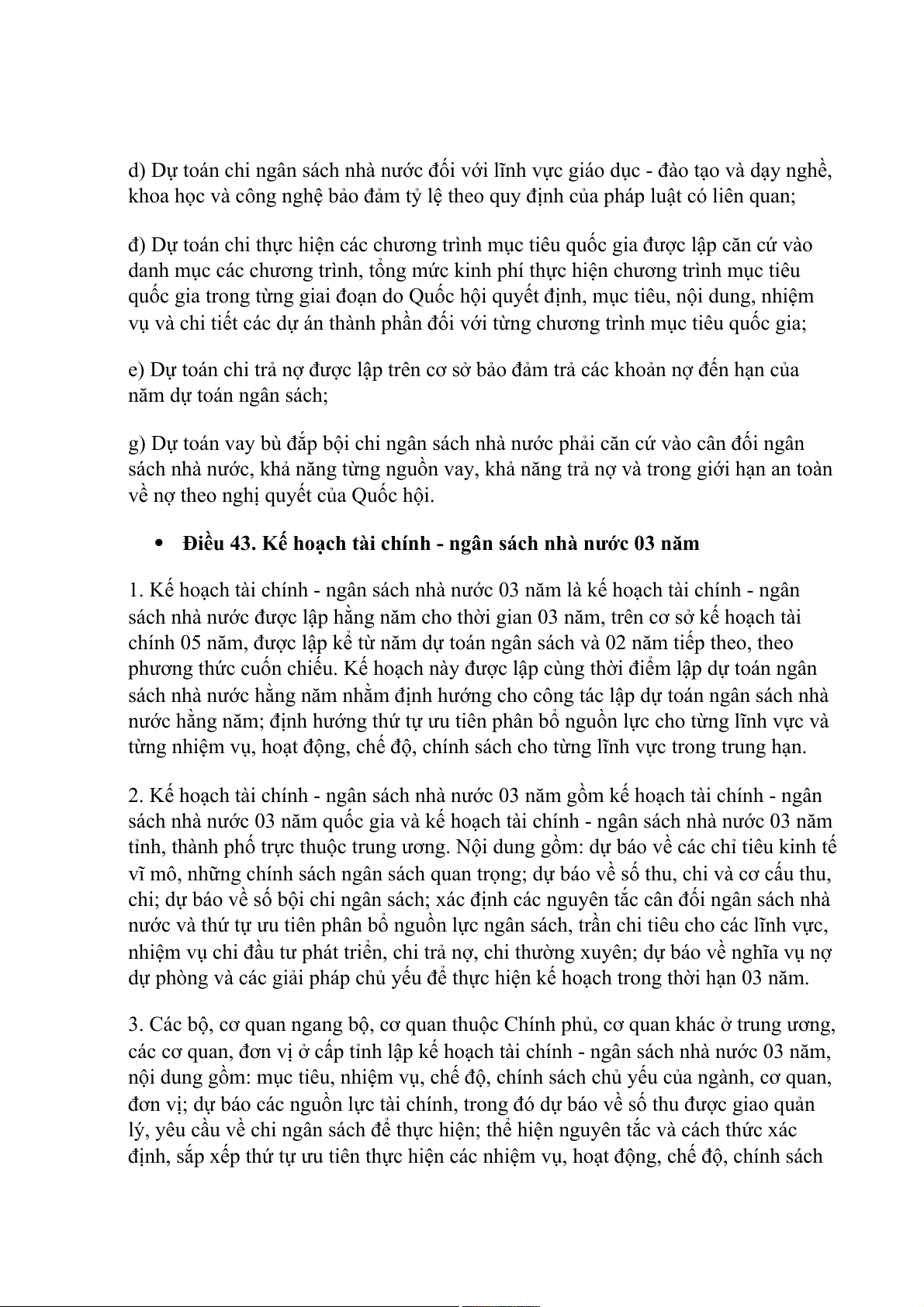 Điều 43. Kế hoạch tài chính - ngân sách nhà nước 03 năm