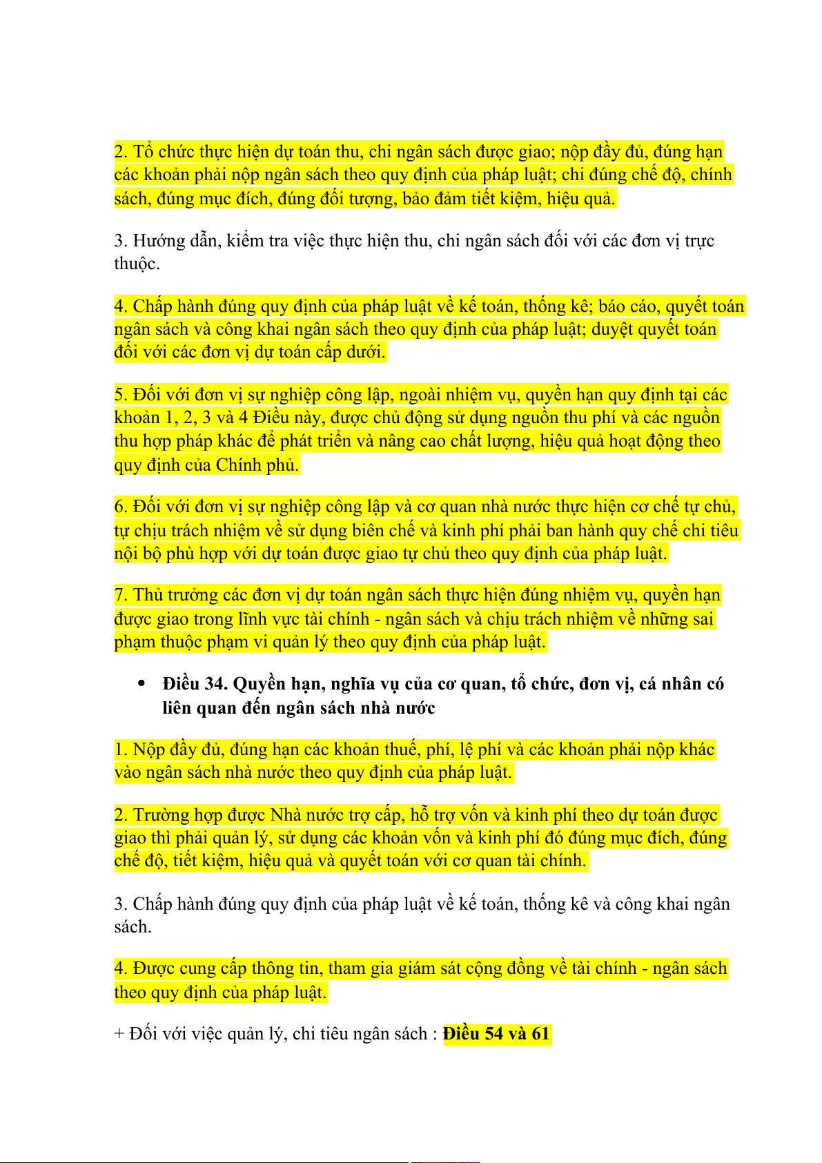 + Đối với việc quản lý, chi tiêu ngân sách : Điều 54 và 61