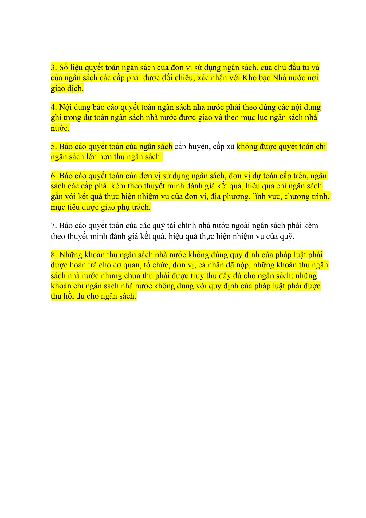 1. Số liệu quyết toán ngân sách nhà nước phải chính xác, trung thực, đầy đủ.