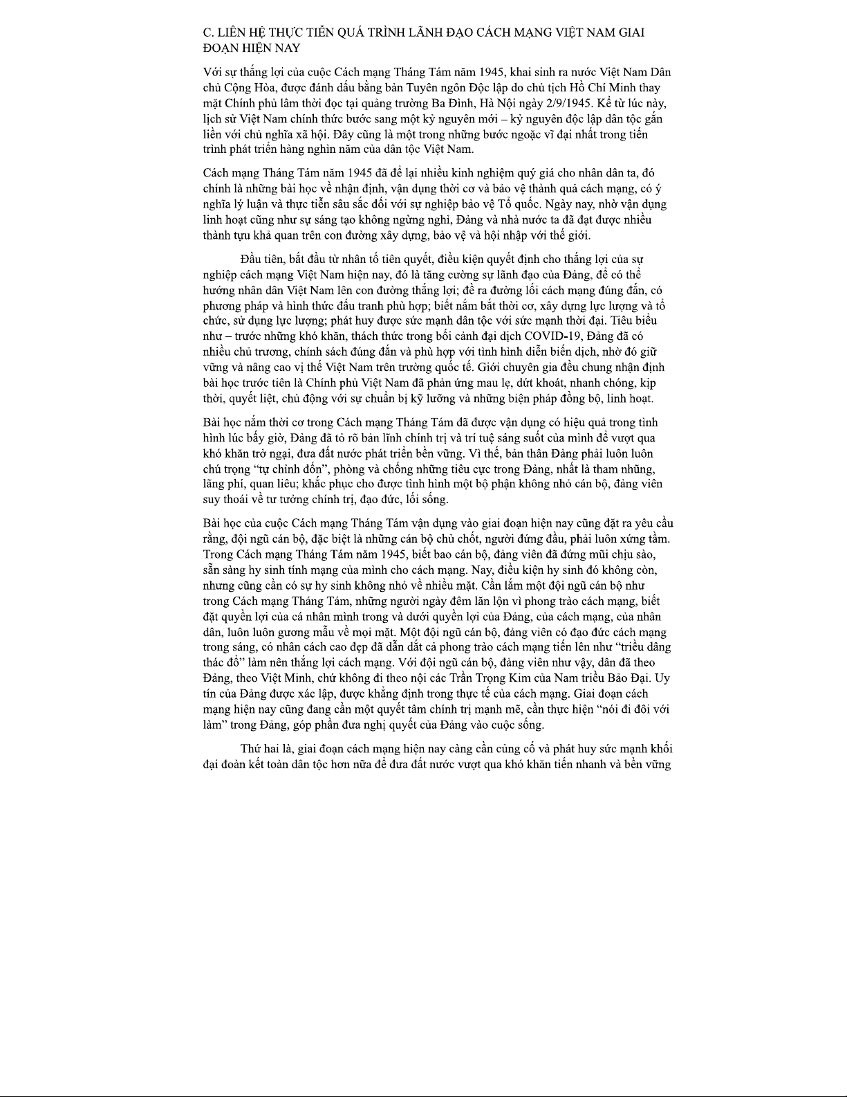 Liên hệ thực tiễn và bài học cách mạng VN hiện nay