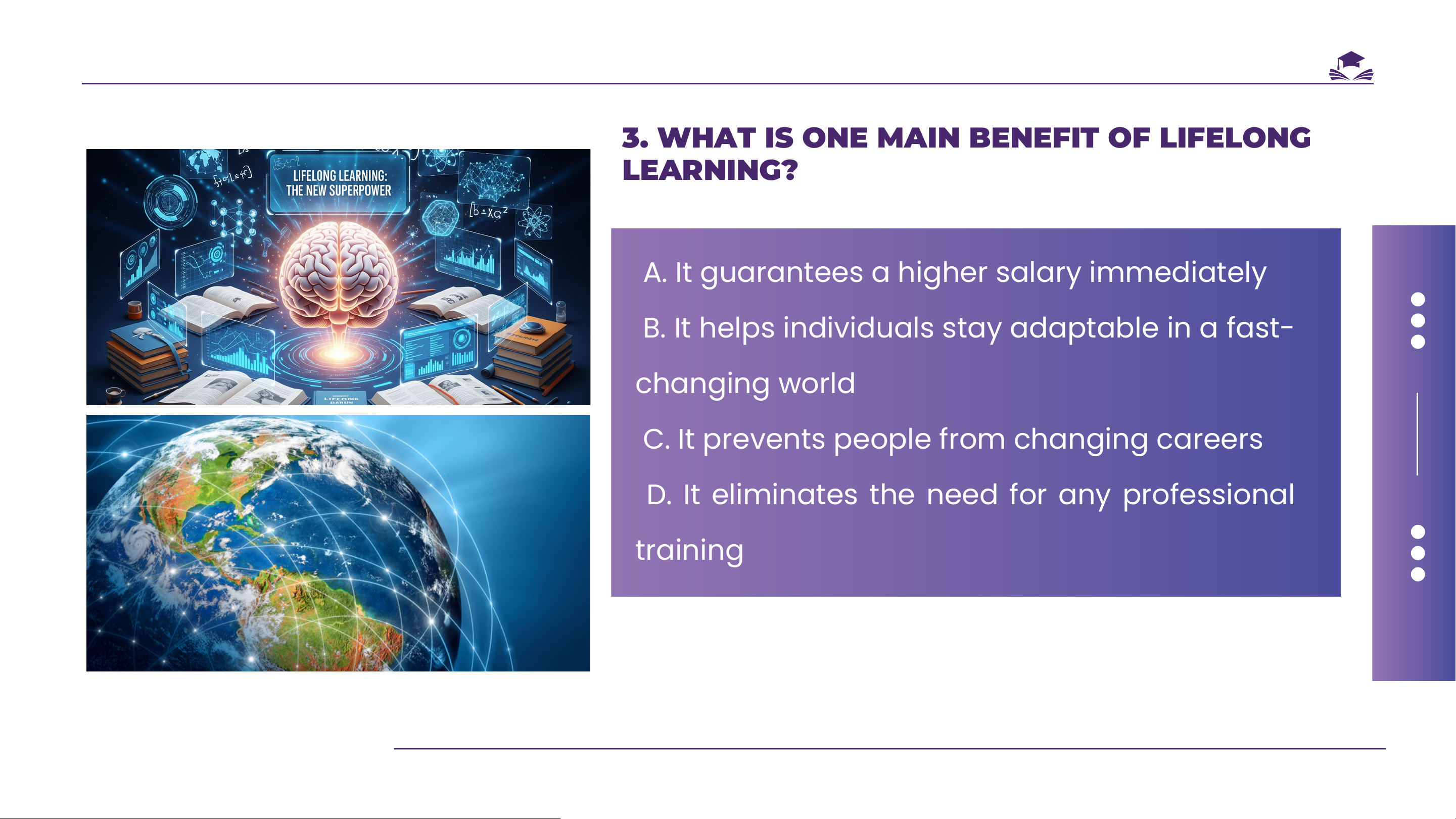 3. WHAT IS ONE MAIN BENEFIT OF LIFELONG LEARNING?