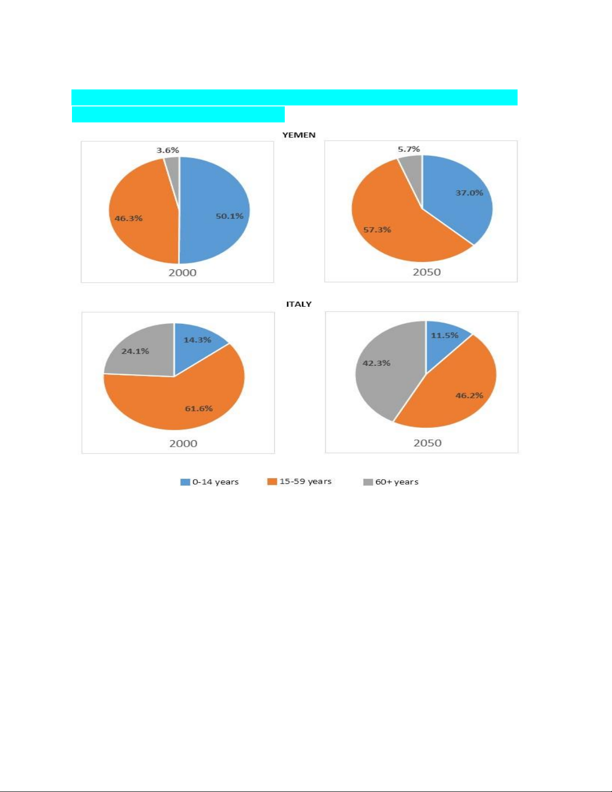 The given pie charts show data on the population ages in Yemen and Italy in the