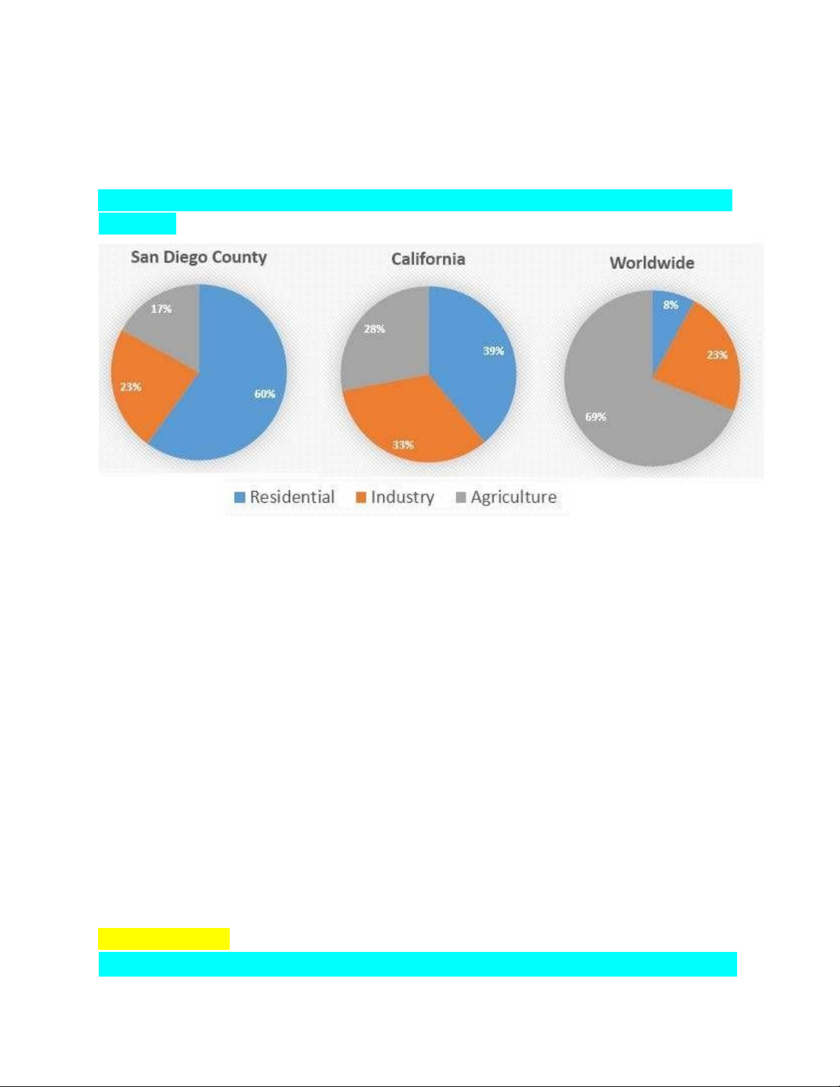 The pie charts below compare water usage in San Diego, California and the rest of the world.
