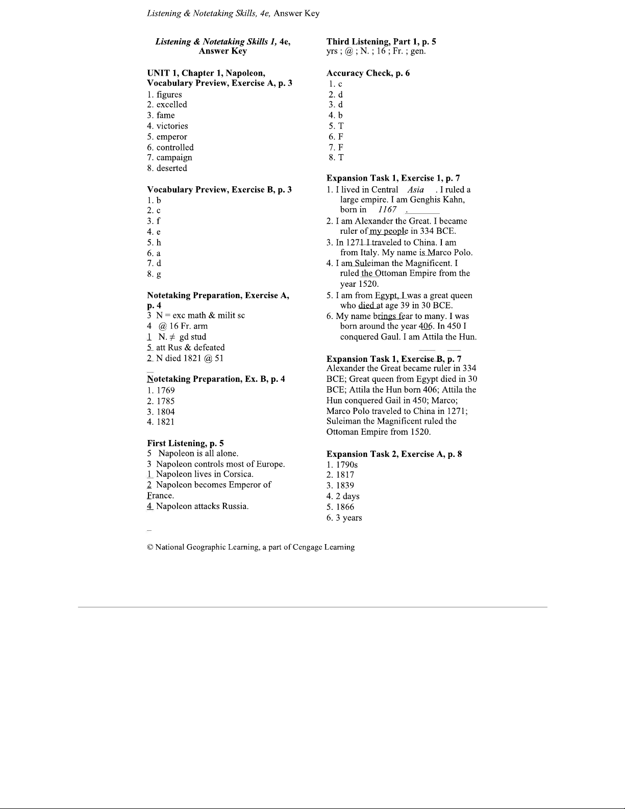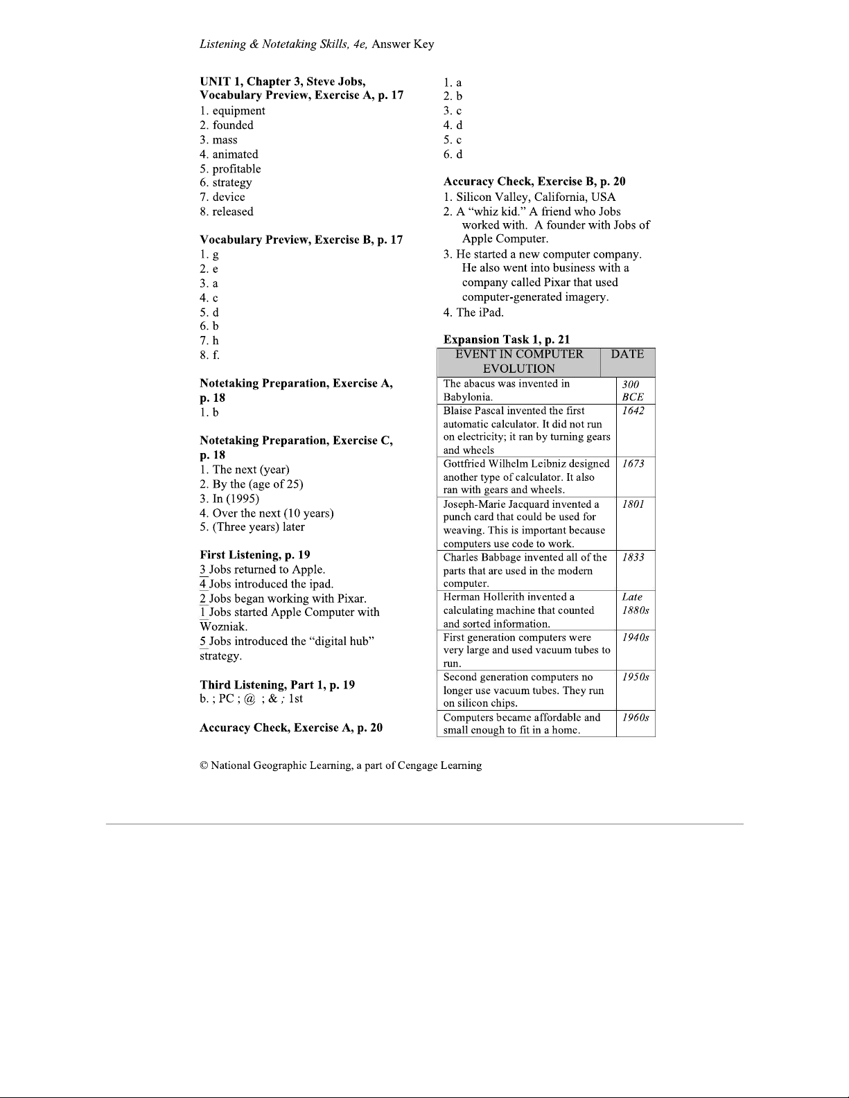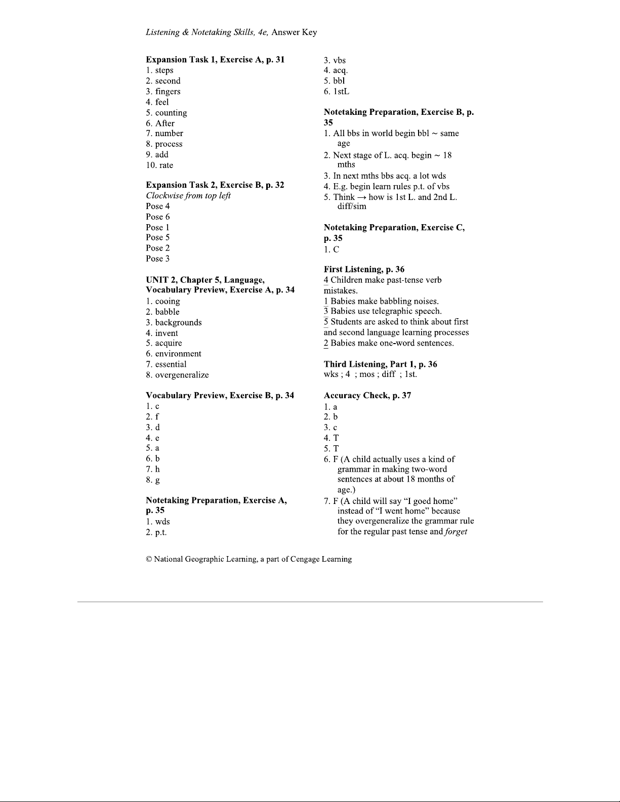 Listening & Notetaking Skills: Answer Key for Units 1-4
