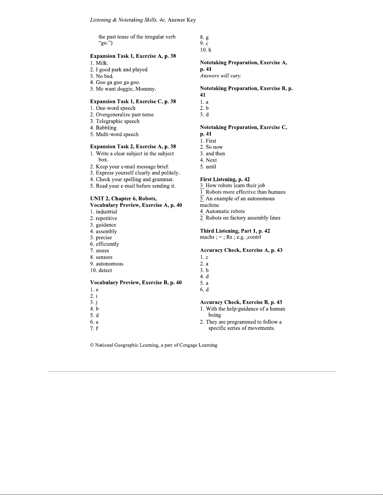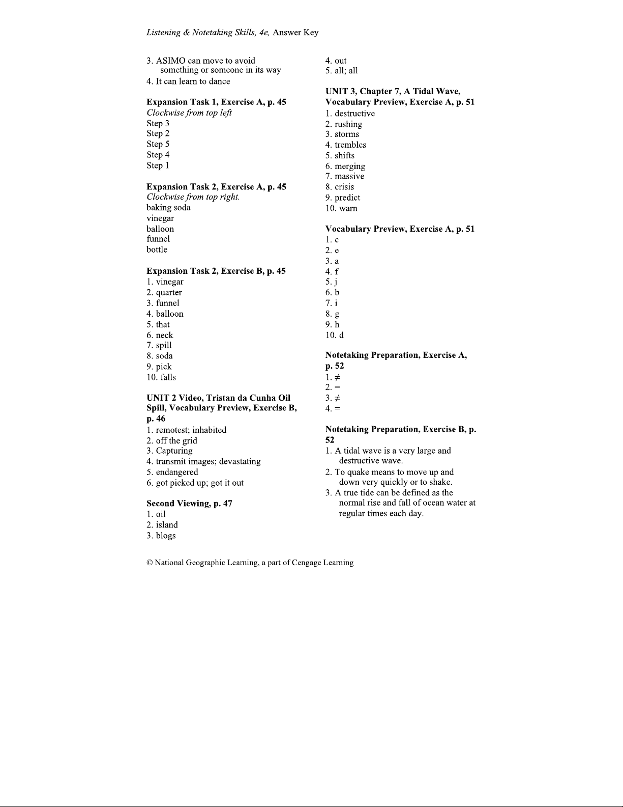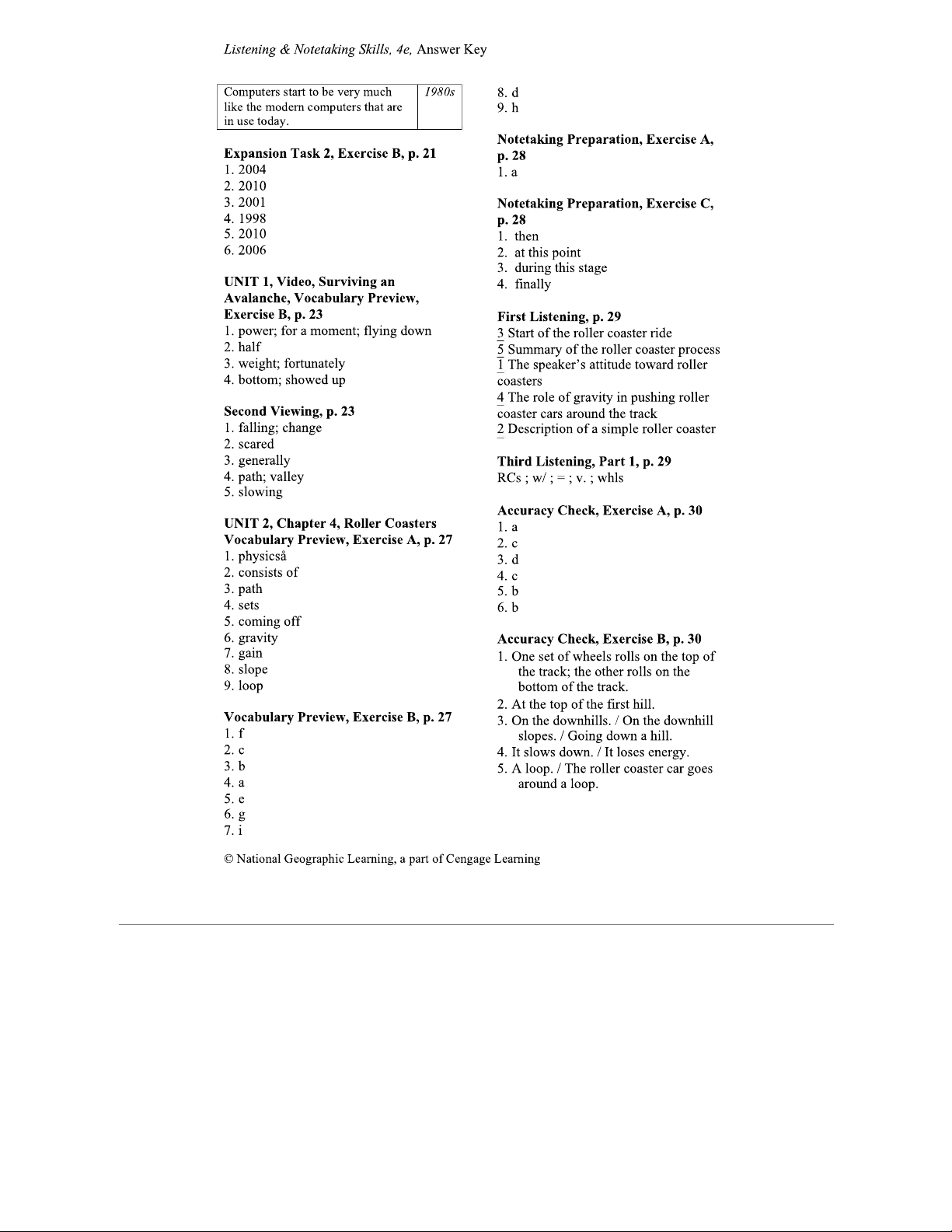 Listening & Notetaking Skills: Answer Key for Units 1-4