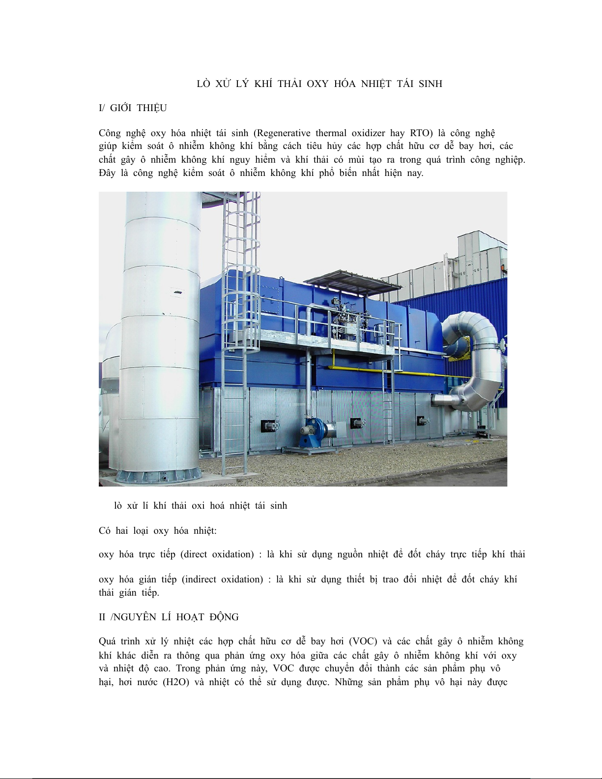 LÒ XỬ LÝ KHÍ THẢI OXY HÓA NHIỆT TÁI SINH I/ GIỚI THIỆU