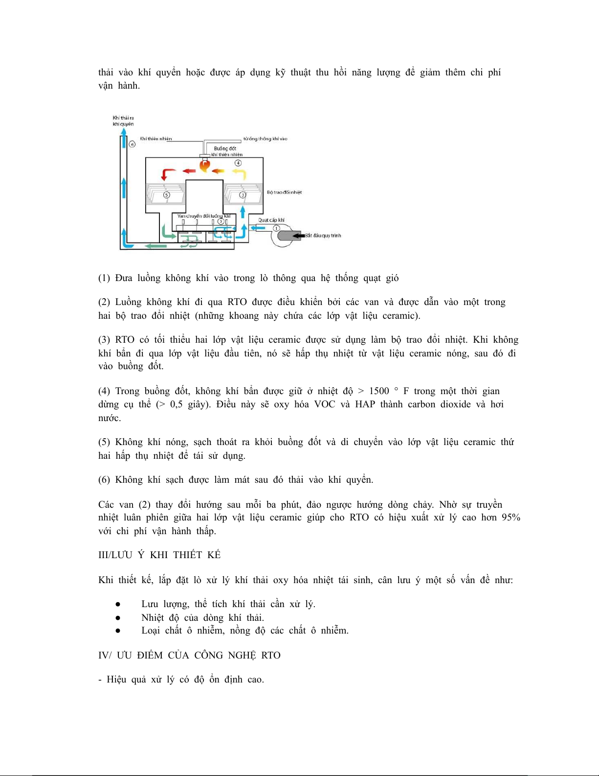 (3) RTO có tối thiểu hai lớp vật liệu ceramic được sử dụng làm bộ trao đổi nhiệt. Khi không