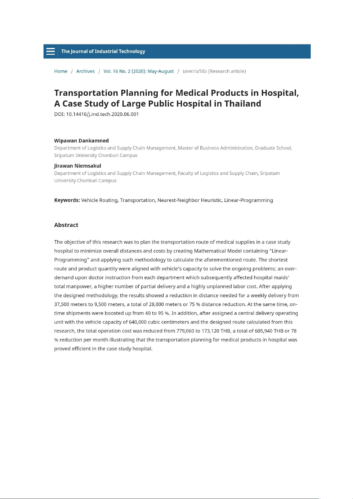 Wipawan Dankamned&Jirawan Niemsakul. (n.d.). Transportation Planning for