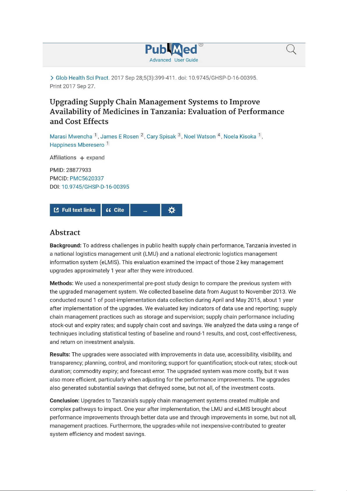 Happiness Mberesero(2017). Upgrading Supply Chain Management systems.