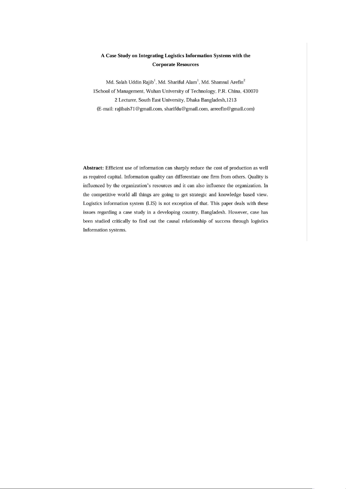 ShamsulArefin(2013,Jan).Integrating Logistics Information Systems. SSRN.