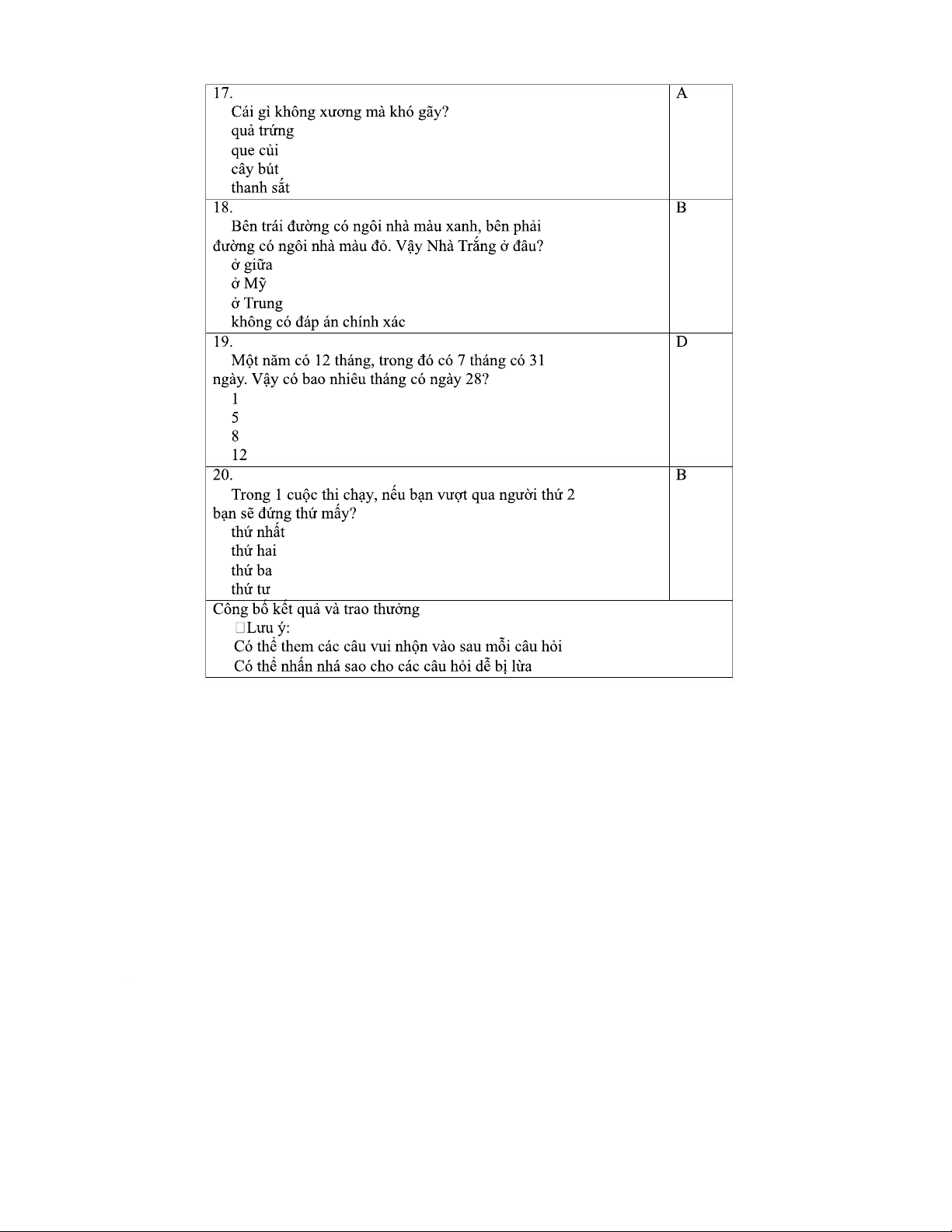 Lời dẫn cho Trò Chơi Tập Thể - Đố Vui Thưởng 2023