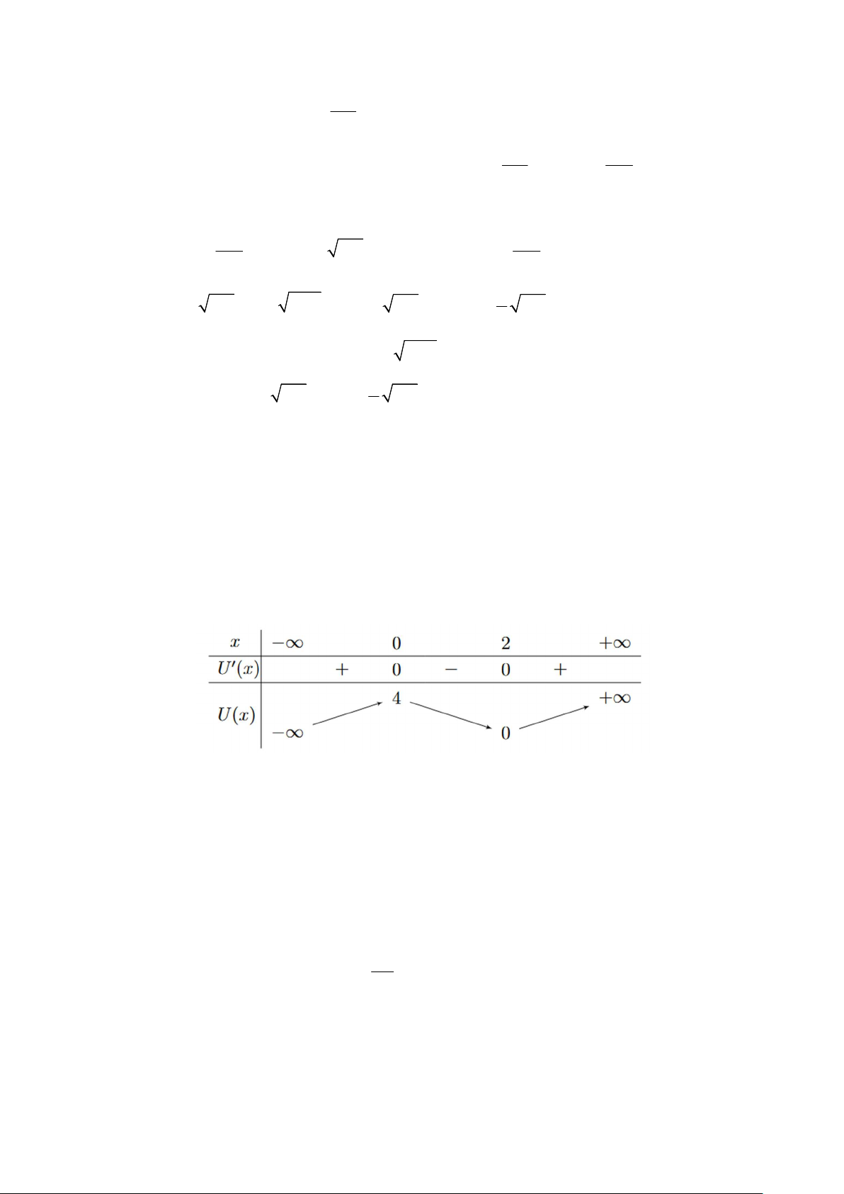 Đạo hàm: ' 2 x U x x x e Bảng biến thiên: