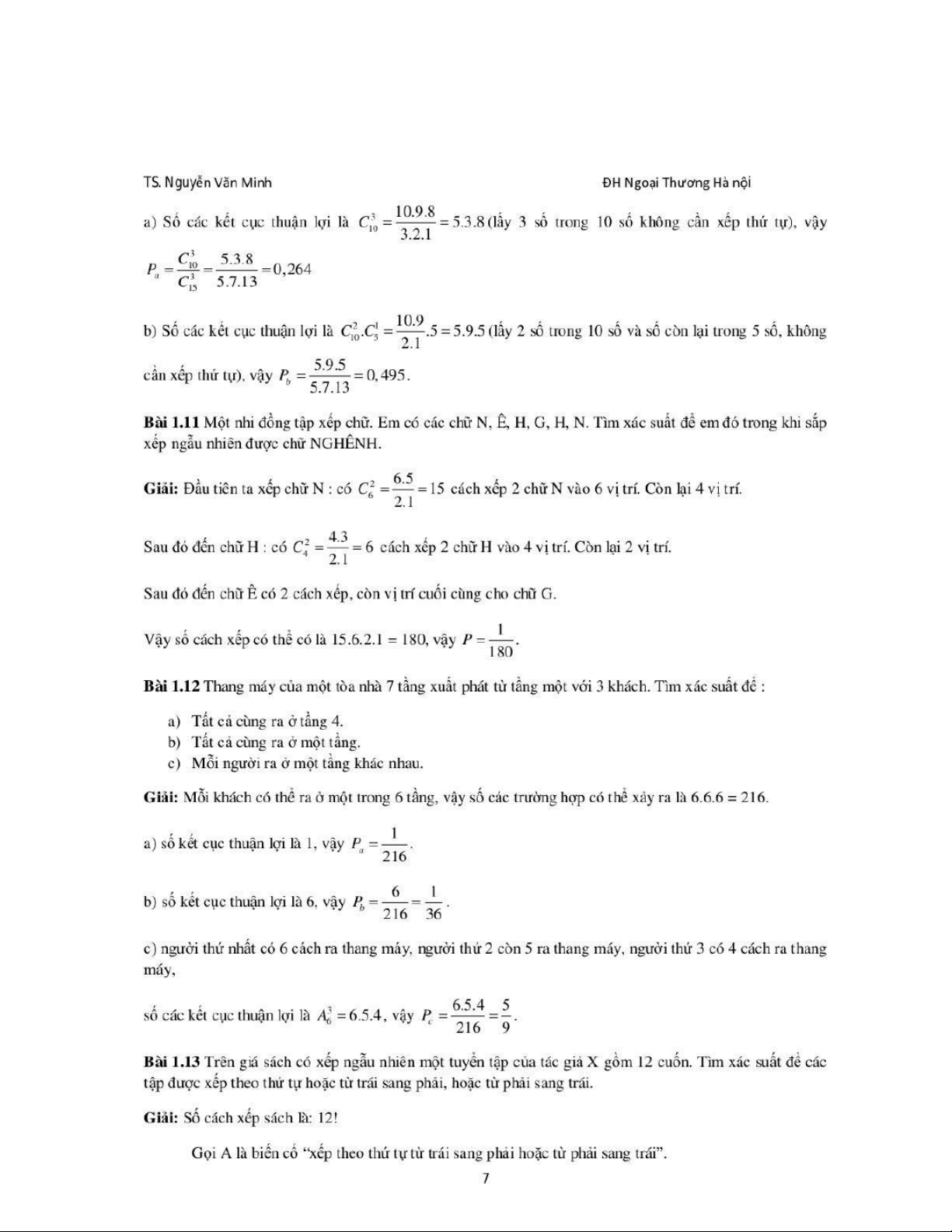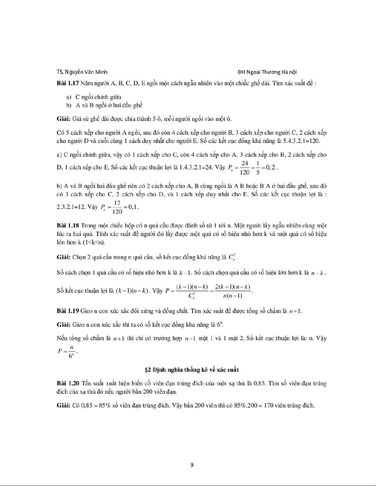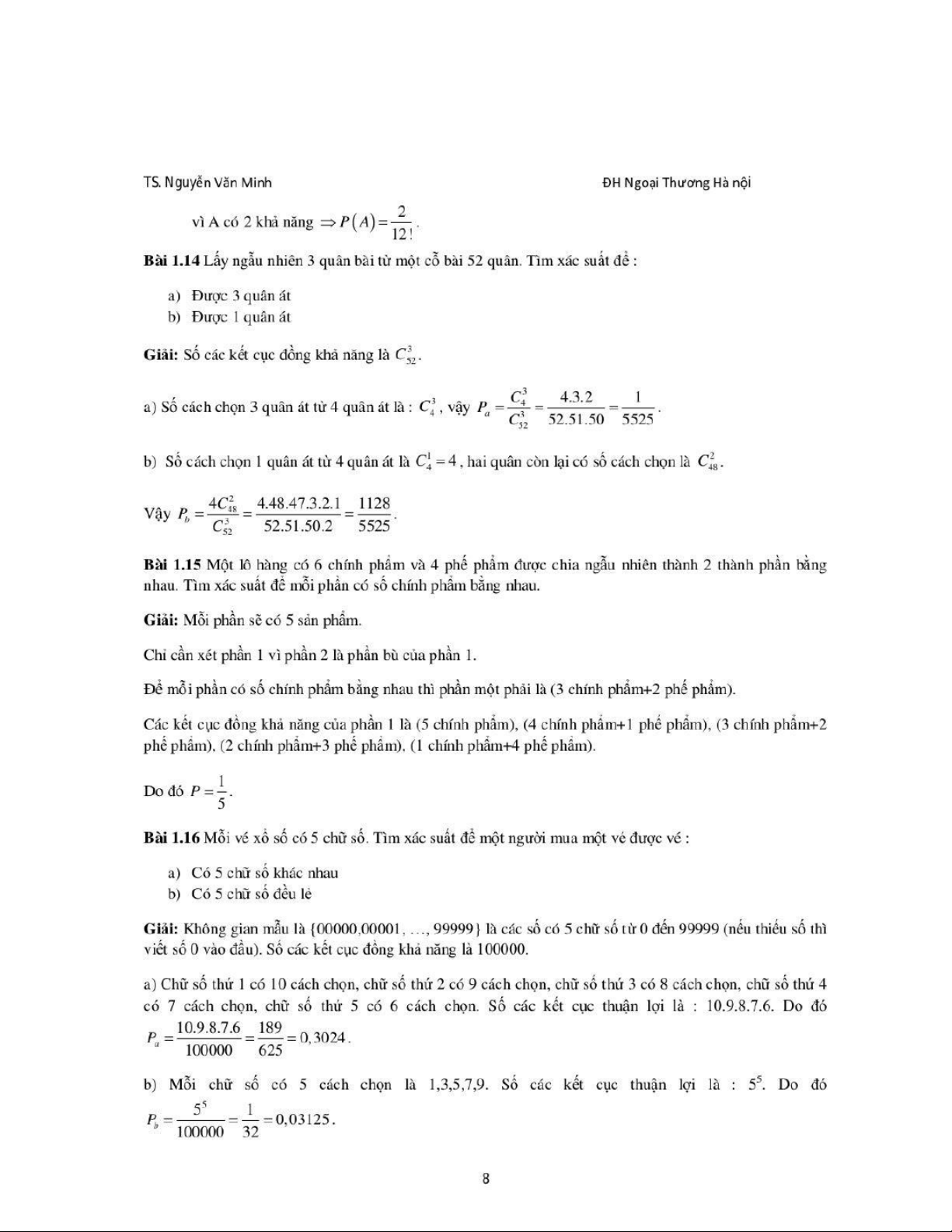 Lời giải cho giáo trình môn Xác suất thống kê| Trường Đại học Ngoại Thương