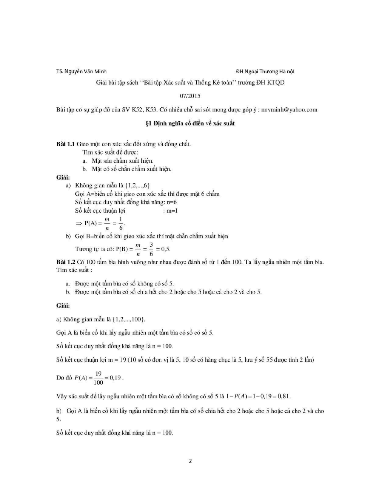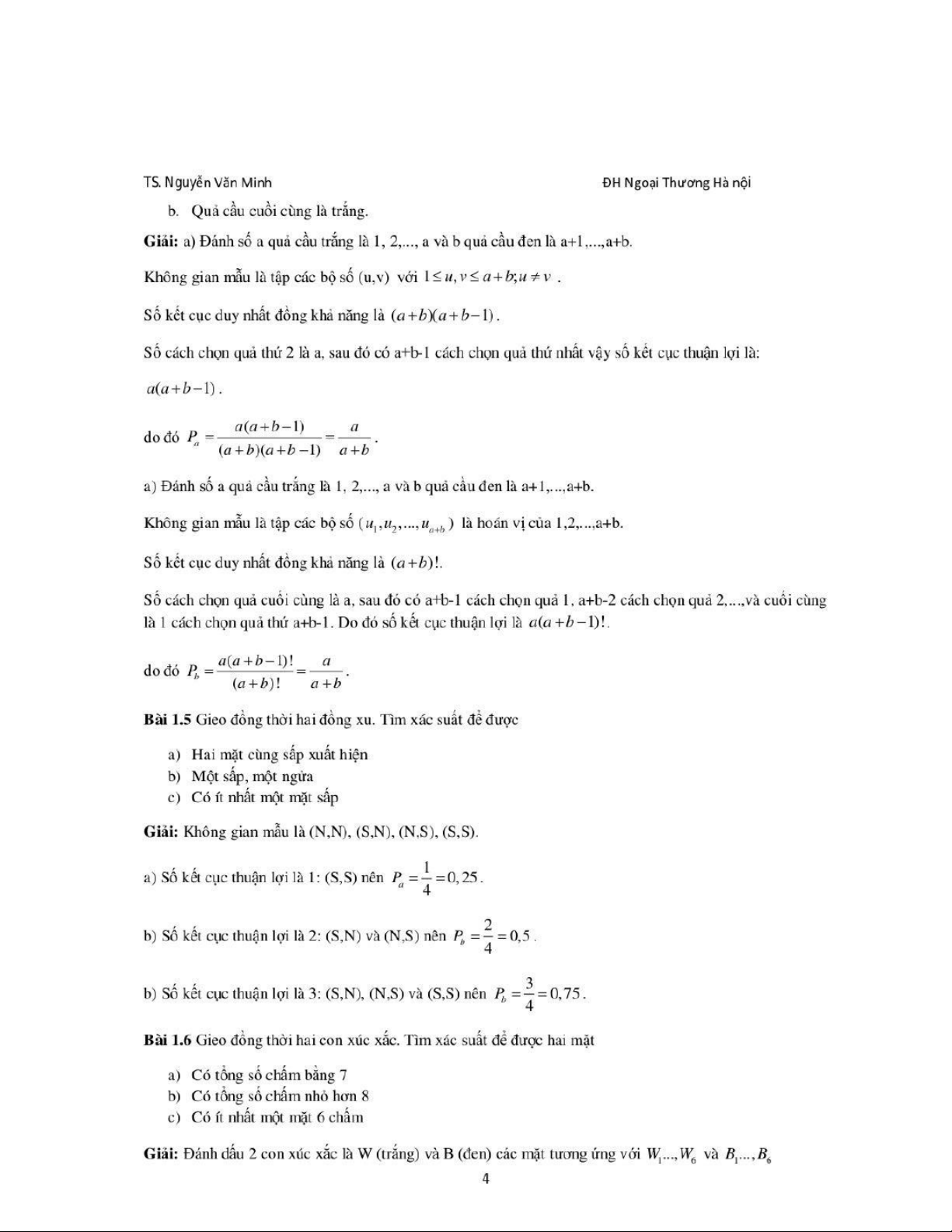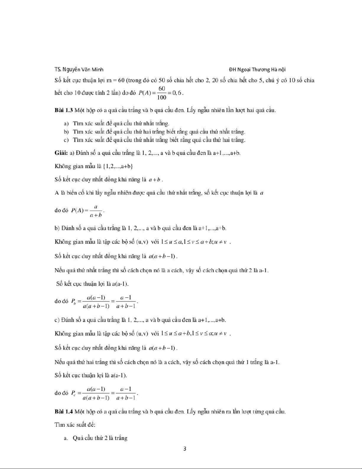 Bài 1 Định nghĩa cổ điển về xác suất môn Xác suất thống kê| Trường Đại học Ngoại Thương