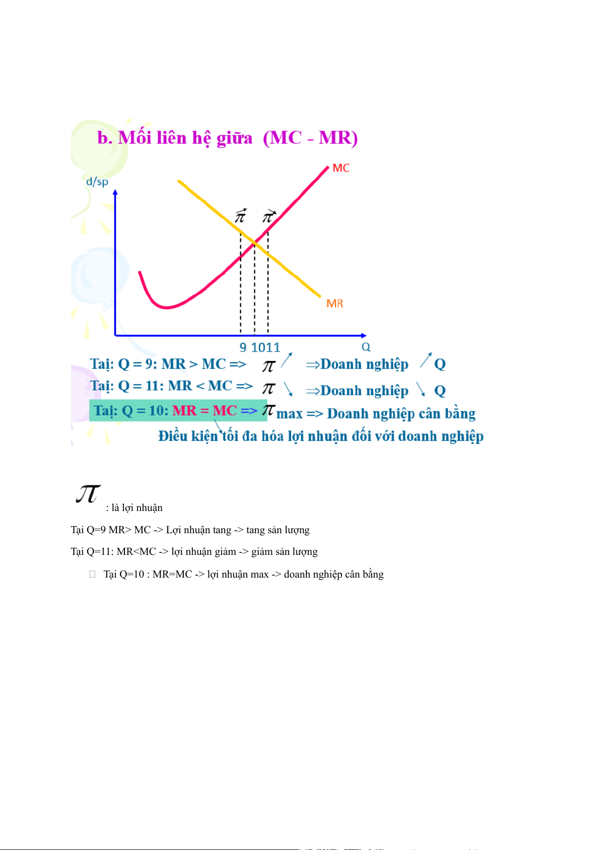 Tại Q=10 : MR=MC -> lợi nhuận max -> doanh nghiệp cân bằng