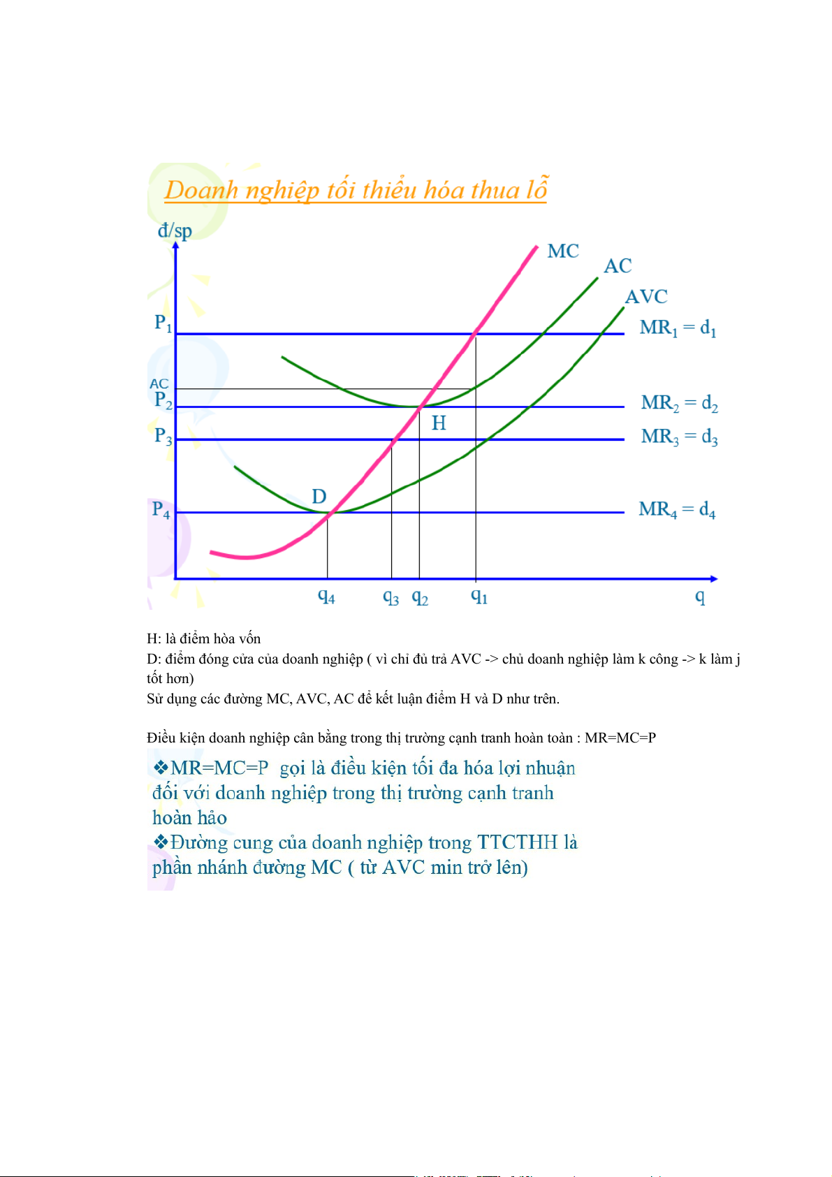 Thông tin về thị trường là hoàn hảo Đường doanh thu biên MR: Đường MC và AC Lợi nhuận max: H: là điểm hòa vốn