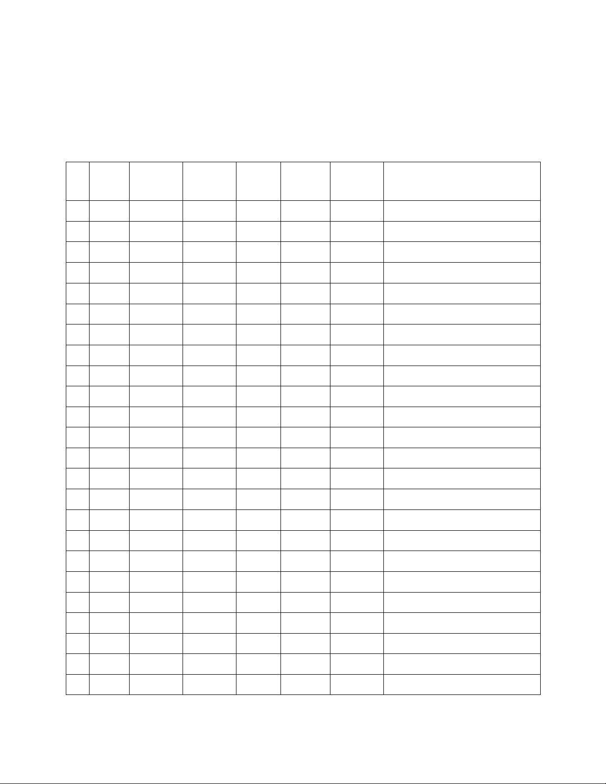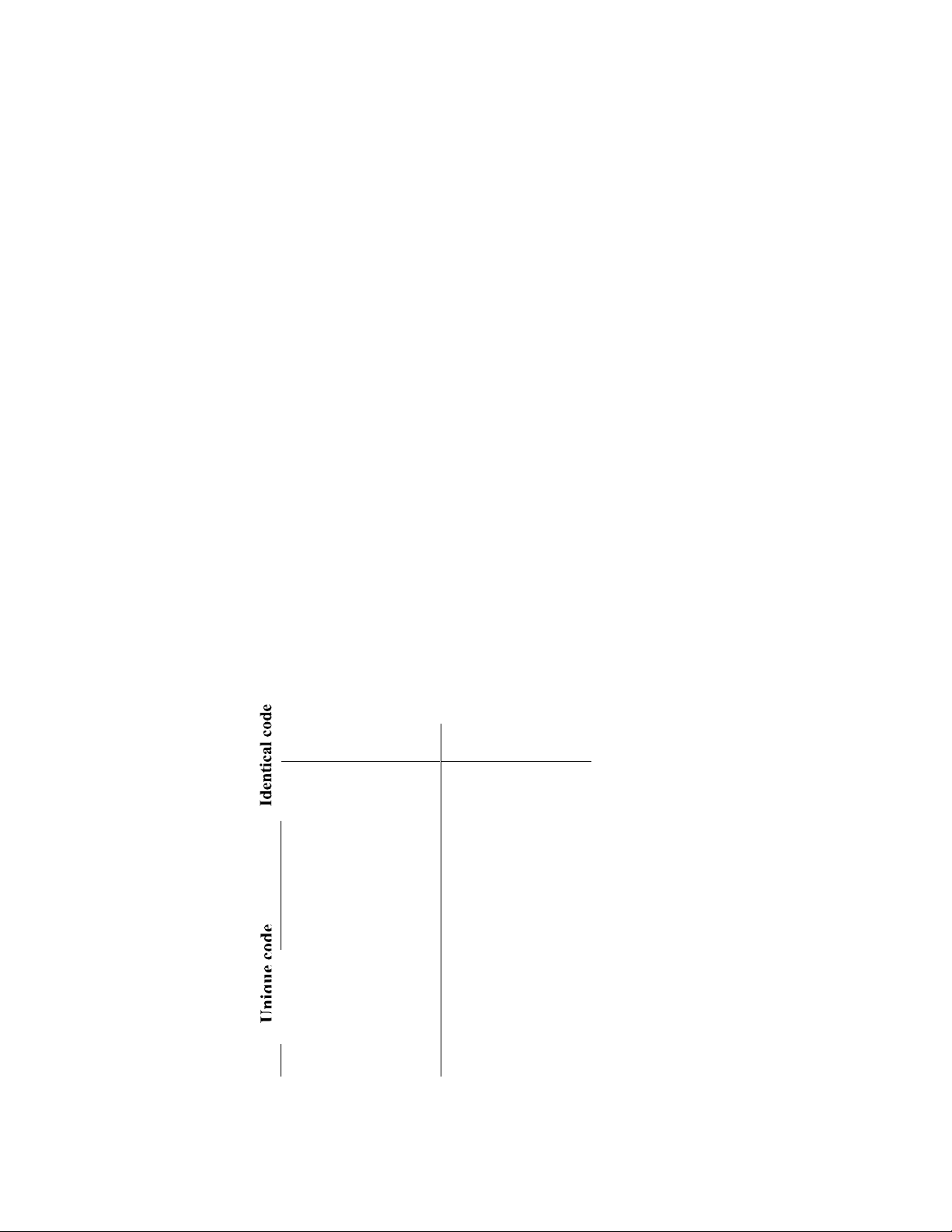 with the remainder of the table being blank. This means that the first codes going into the