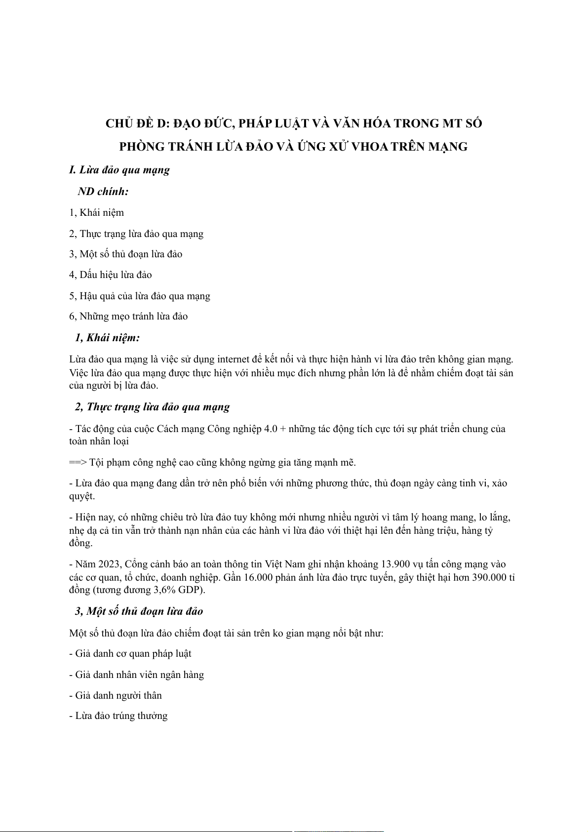 PHÒNG TRÁNH LỪA ĐẢO VÀ ỨNG XỬ VHOA TRÊN MẠNG