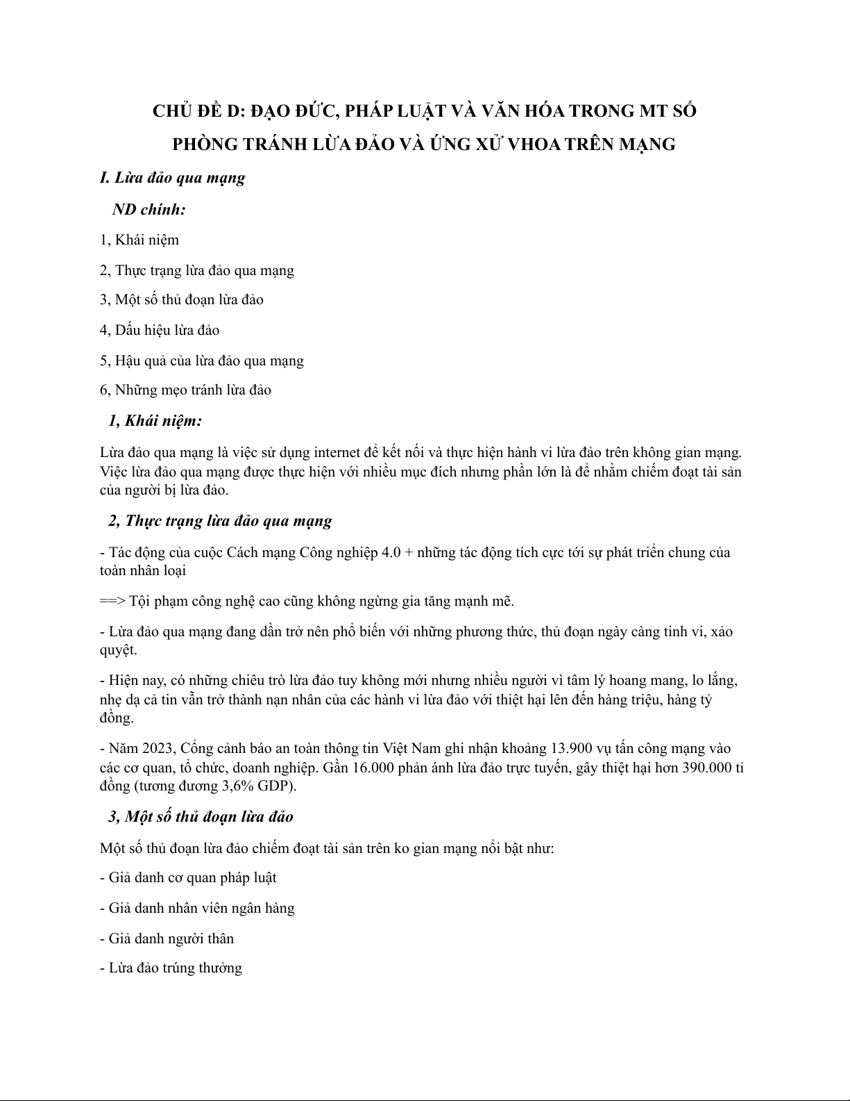 PHÒNG TRÁNH LỪA ĐẢO VÀ ỨNG XỬ VHOA TRÊN MẠNG