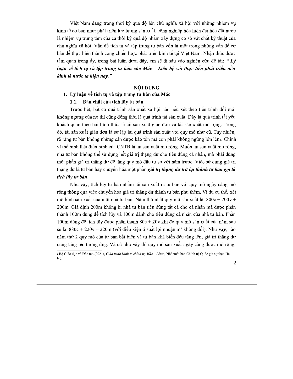 Luận Văn về Tích Cực và Tập Trung Tư Bản của Mác tại VN