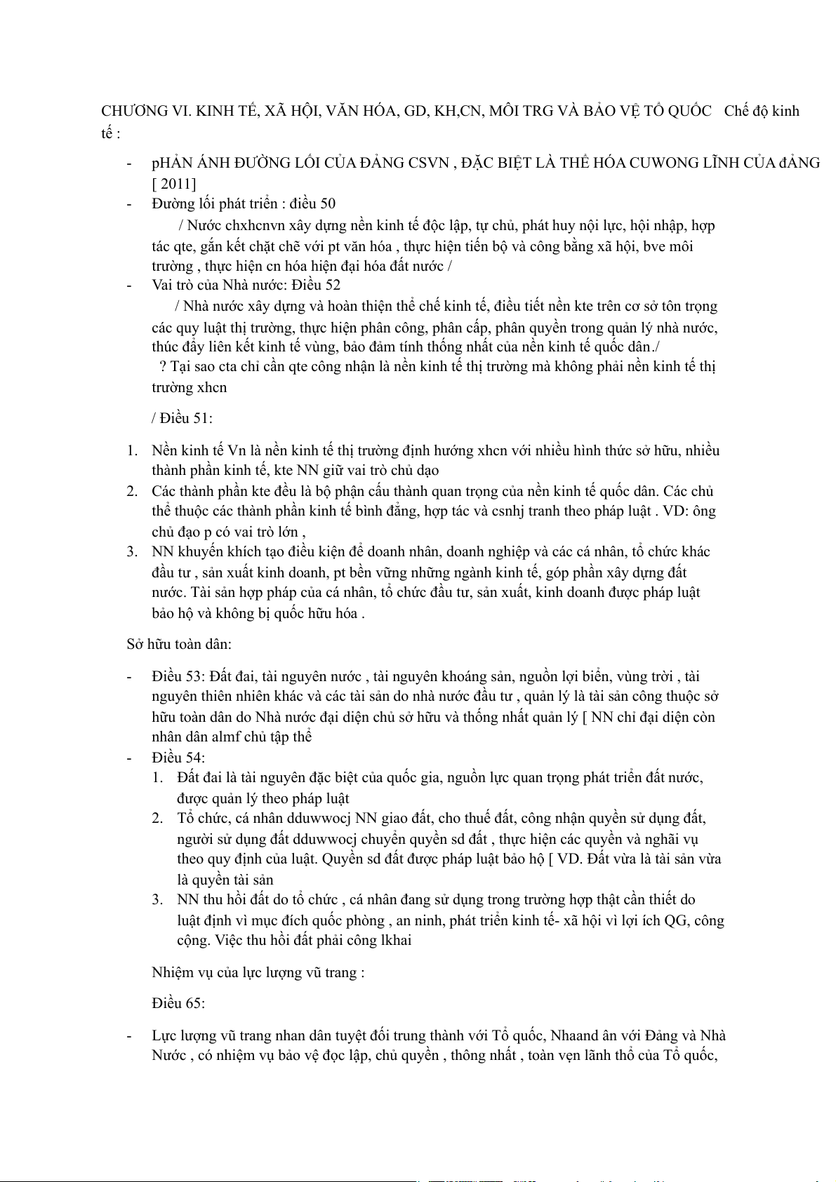 CHƯƠNG VI. KINH TẾ, XÃ HỘI, VĂN HÓA, GD, KH,CN, MÔI TRG VÀ BẢO VỆ TỔ QUỐC Chế độ kinh tế : -