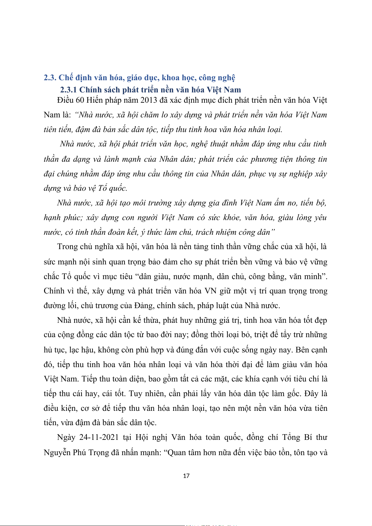 2.3.1 Chính sách phát triển nền văn hóa Việt Nam
