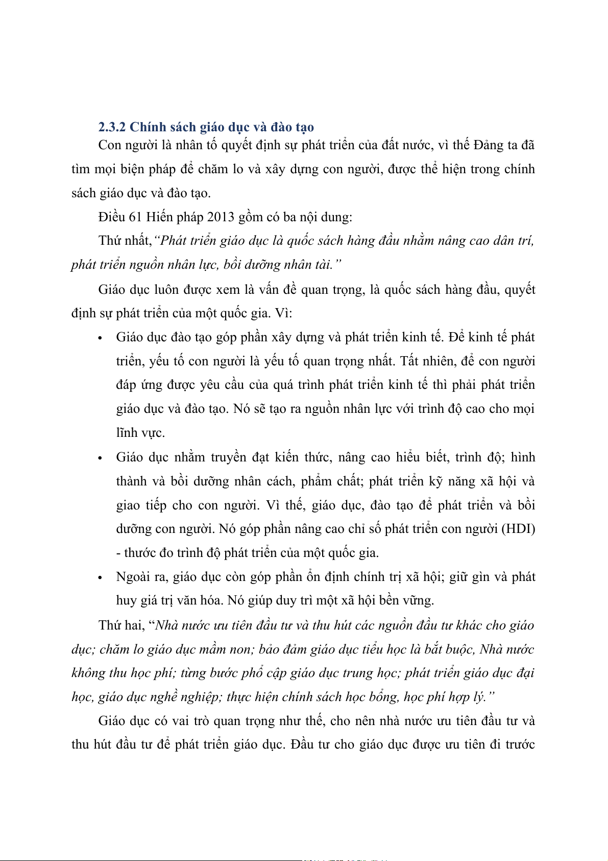 2.3.2 Chính sách giáo dục và đào tạo