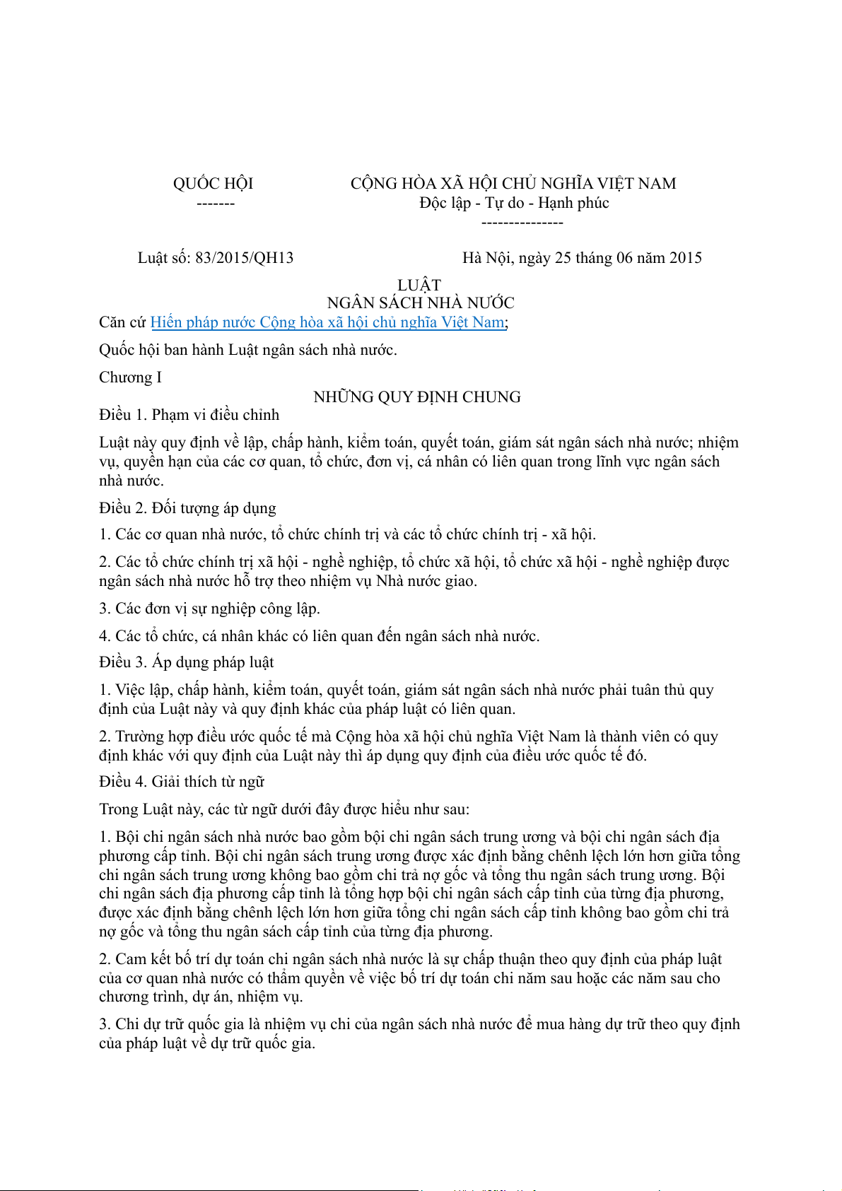 Hà Nội, ngày 25 tháng 06 năm 2015 LUẬT NGÂN SÁCH NHÀ NƯỚC