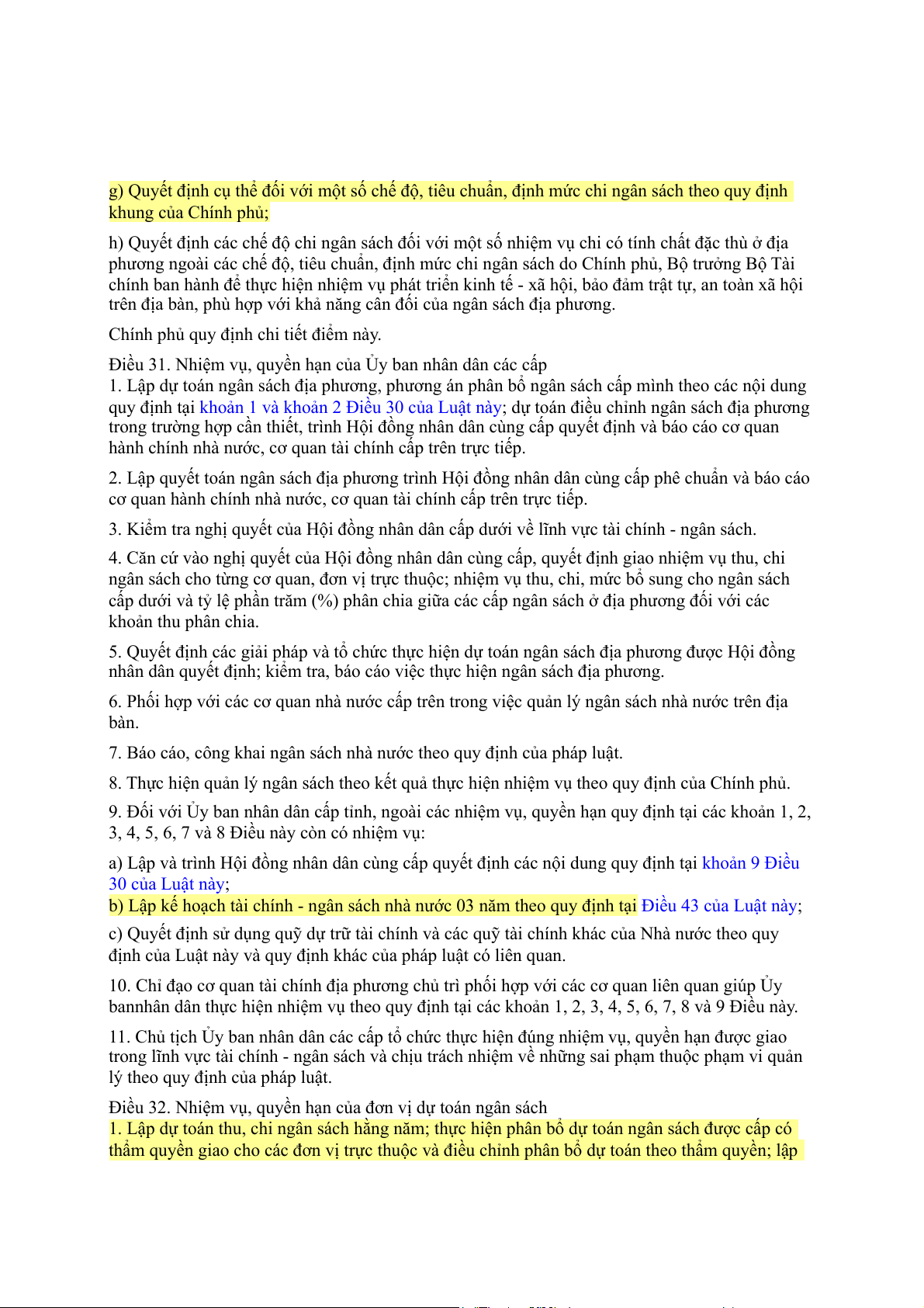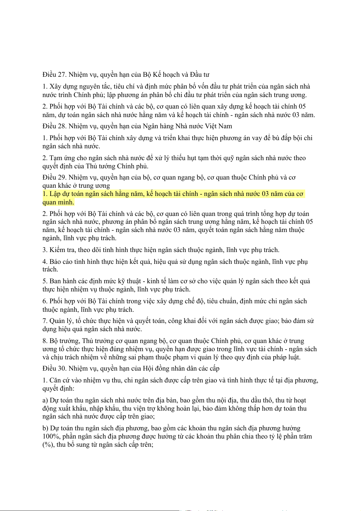 1. Lập dự toán ngân sách địa phương, phương án phân bổ ngân sách cấp mình theo các nội dung quy định tại