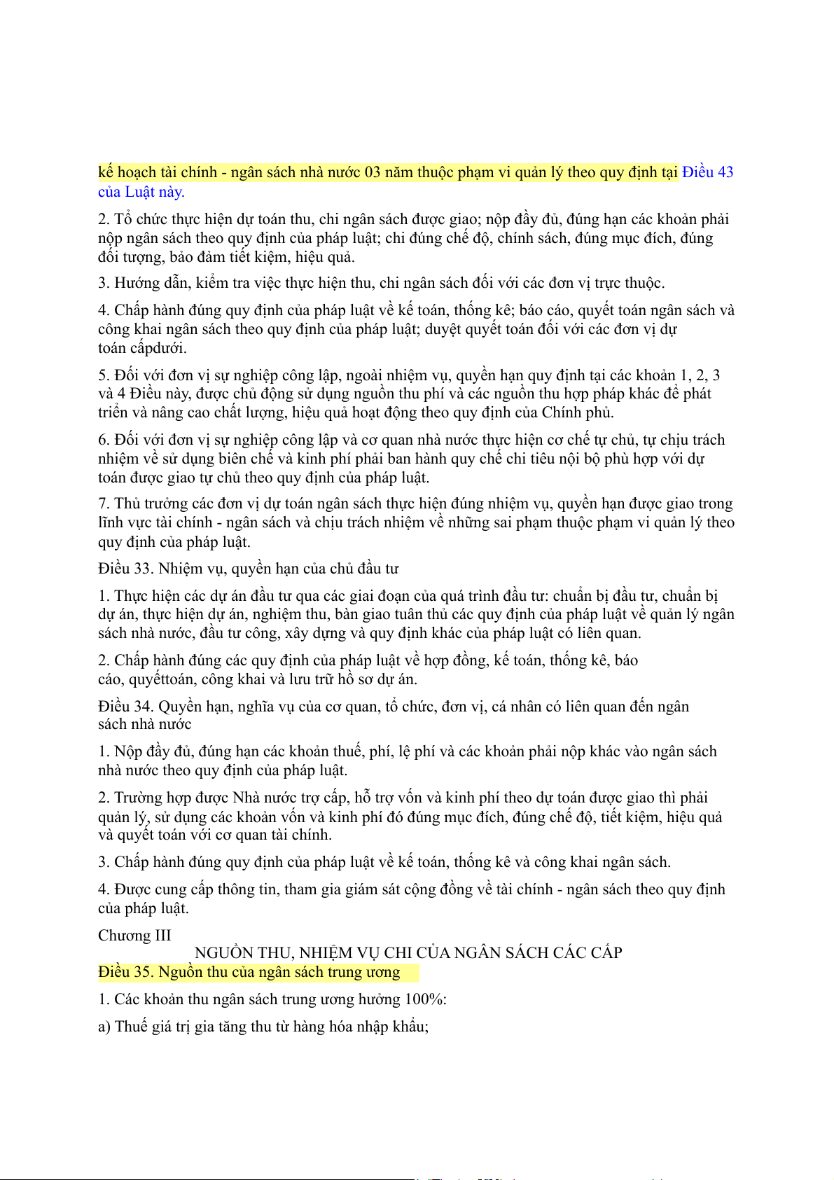 sách nhà nước, đầu tư công, xây dựng và quy định khác của pháp luật có liên quan.