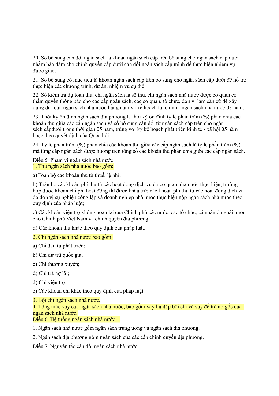 20. Số bổ sung cân đối ngân sách là khoản ngân sách cấp trên bổ sung cho ngân sách cấp dưới