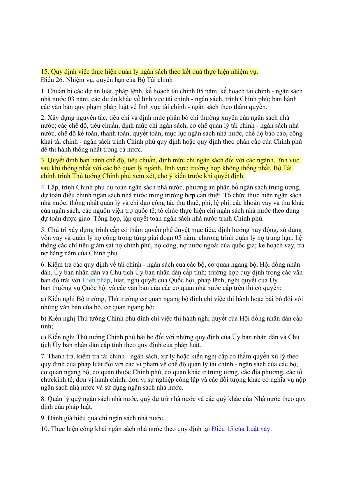 hưởng và các khoản chi ngân sách nhà nước thuộc nhiệm vụ chi của cấp trung ương. 16.
