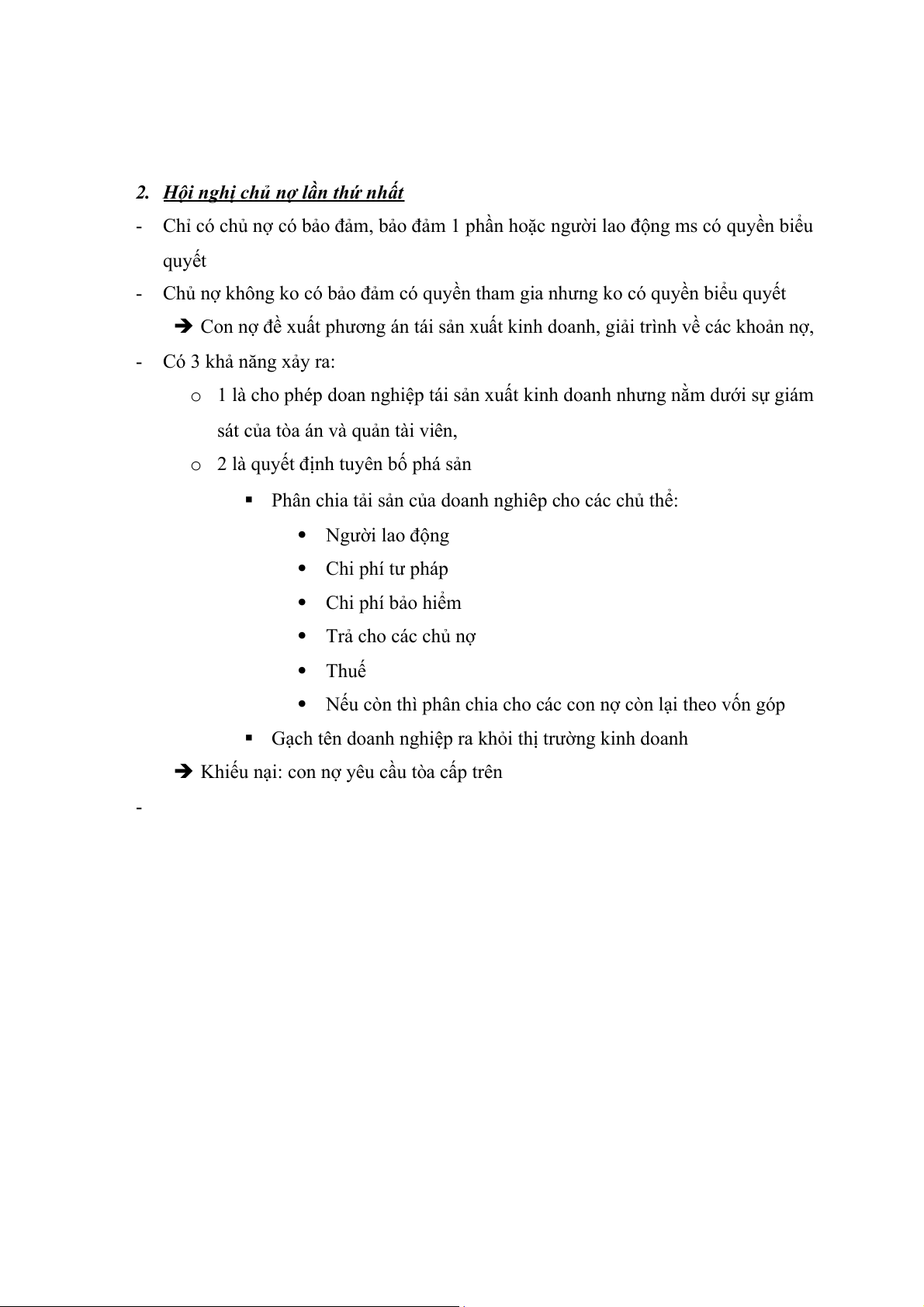 - Chỉ có chủ nợ có bảo đảm, bảo đảm 1 phần hoặc người lao động ms có quyền biểu quyết