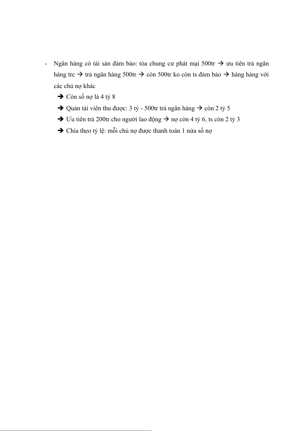 giải quyết vụ việc phá sản trên như nào? (biết rằng căn hộ chung cư phát mại được 500 triệu đồng) - Tổng sổ nợ: 5 tỷ 3