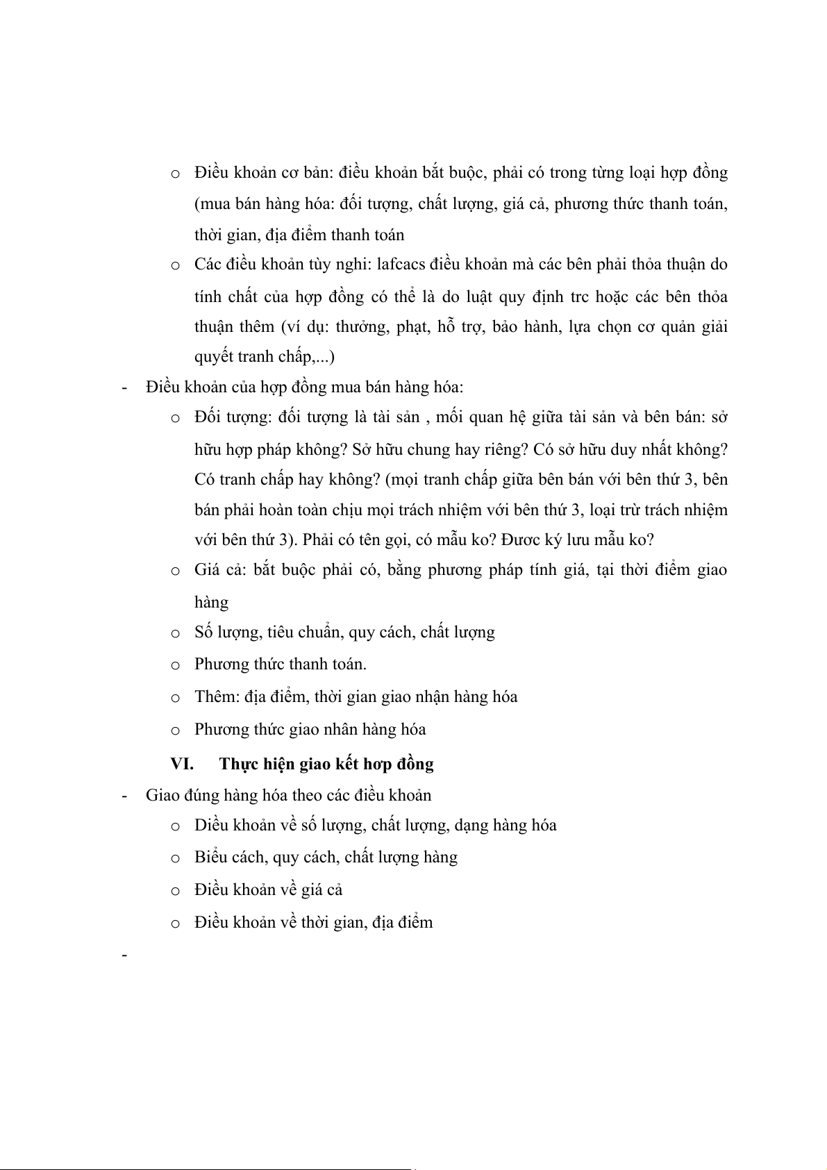 - Điều khoản của hợp đồng mua bán hàng hóa: o