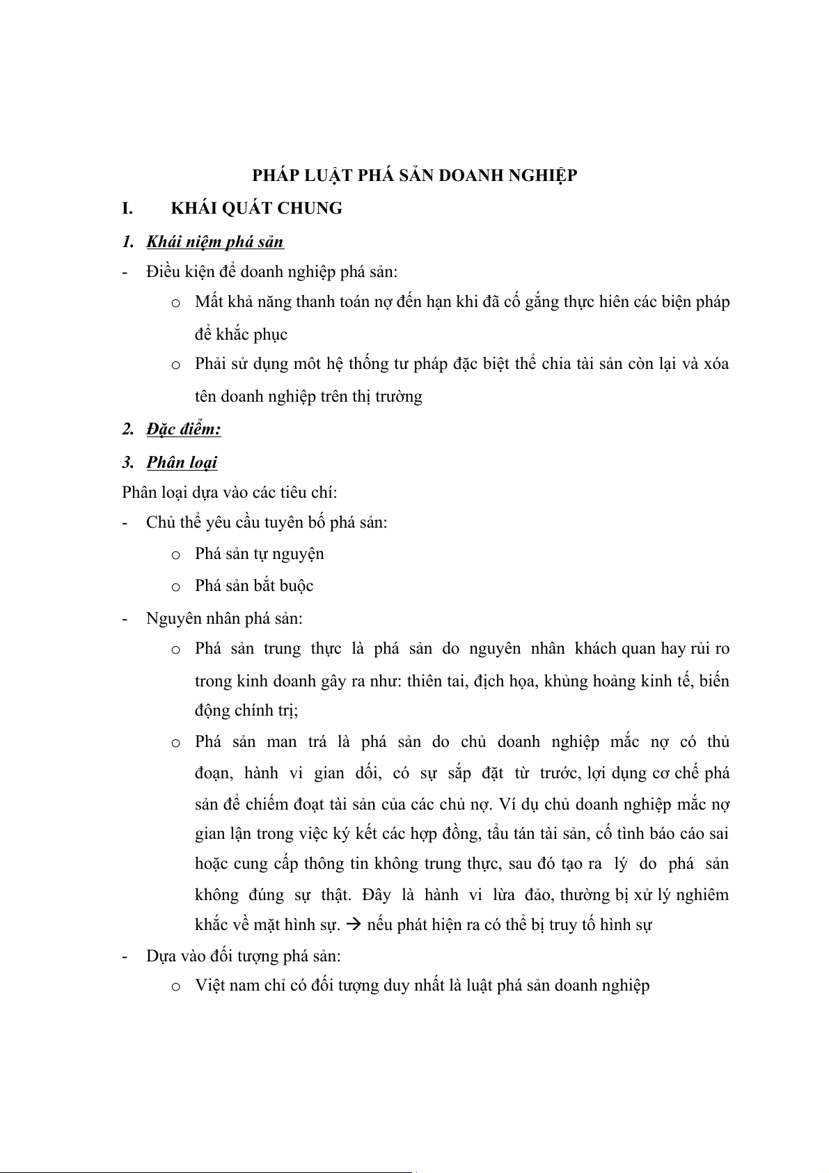 Việt nam chỉ có đối tượng duy nhất là luật phá sản doanh nghiệp o