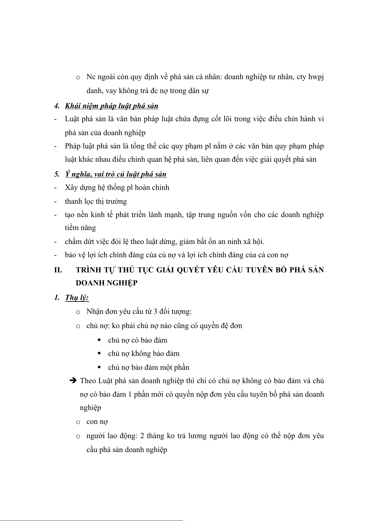 - Chủ thể yêu cầu tuyên bố phá sản: o Phá sản tự nguyện o Phá sản bắt buộc - Nguyên nhân phá sản: o
