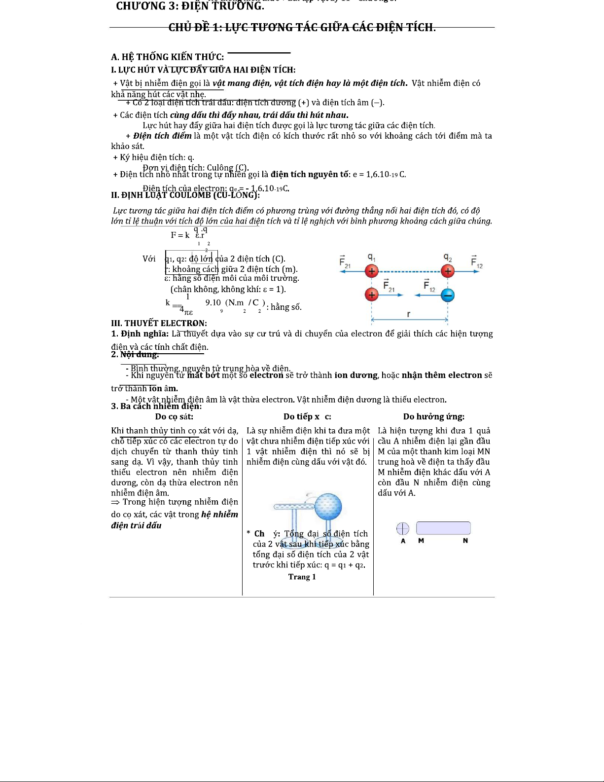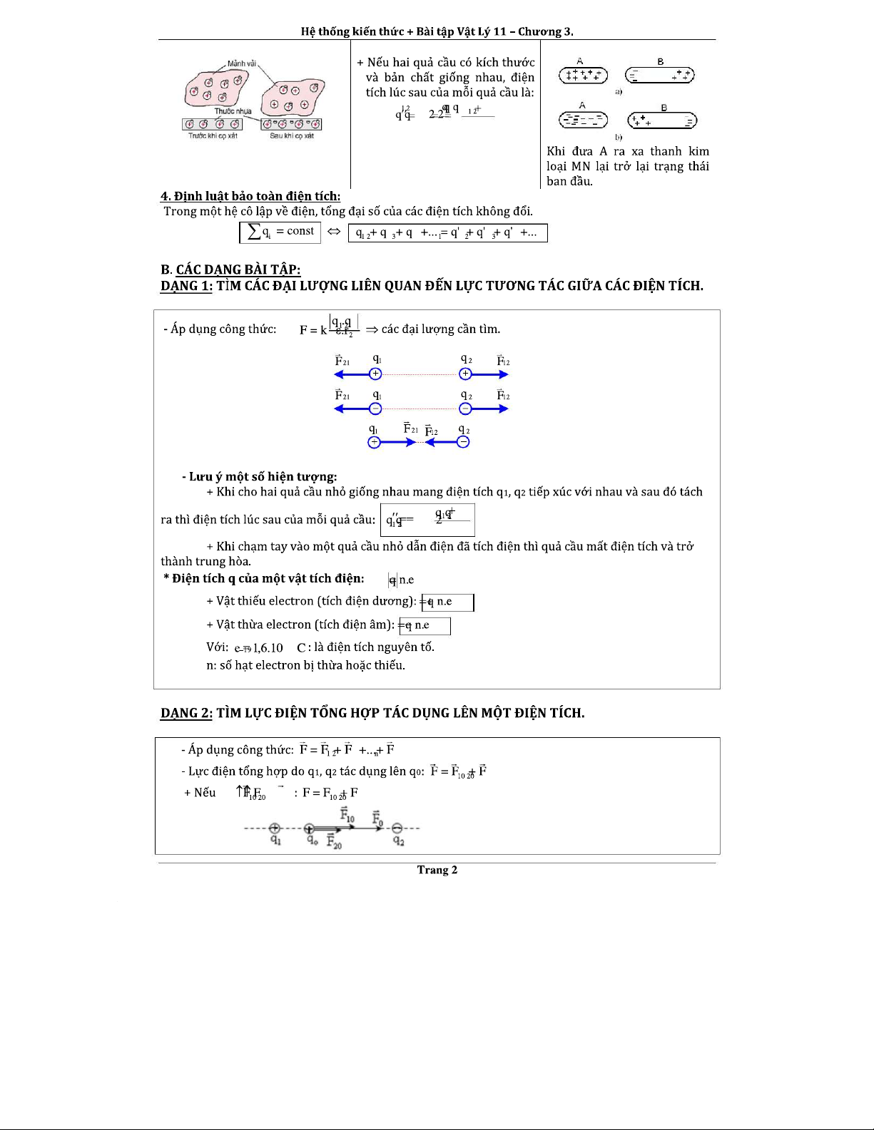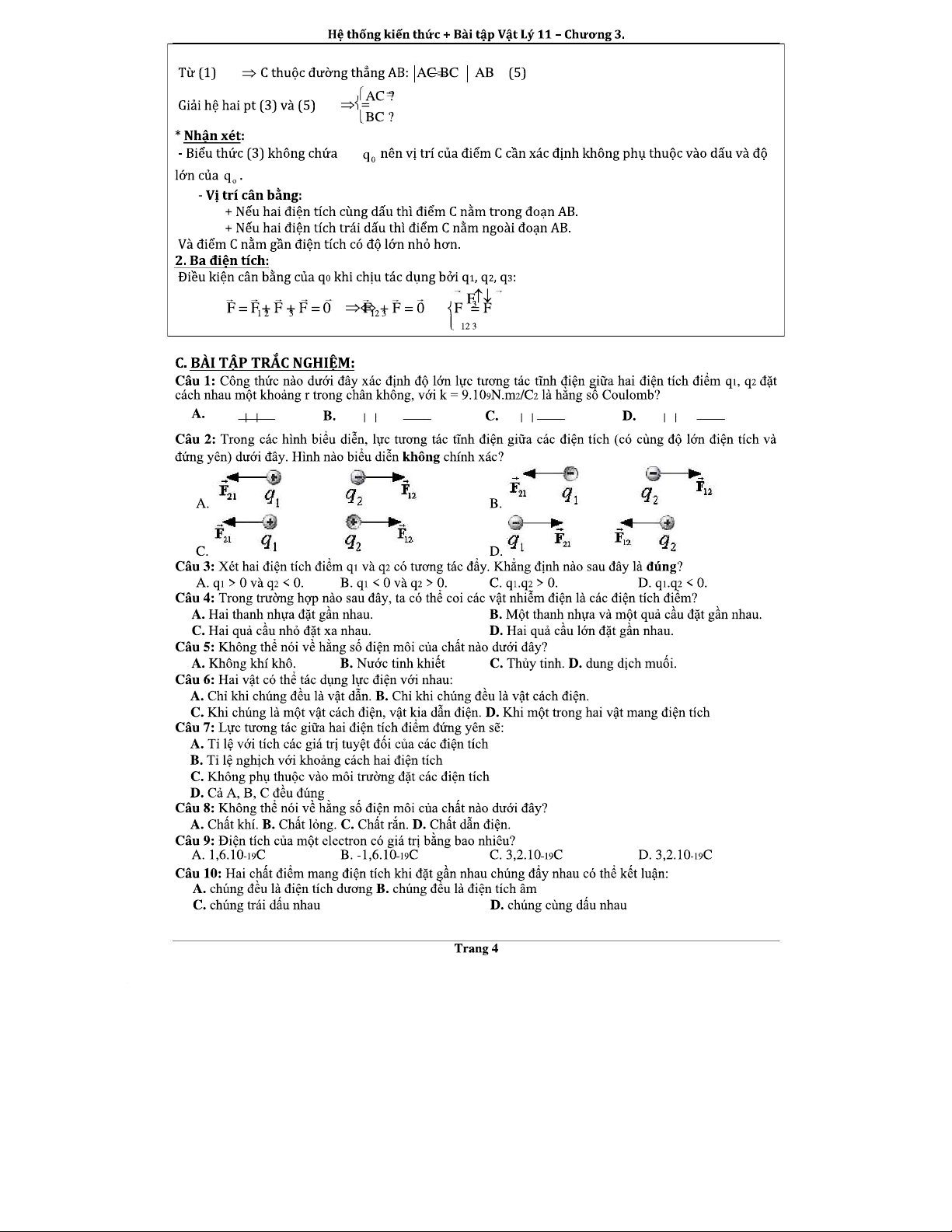 LỰC TƯƠNG TÁC GIỮA CÁC ĐIỆN TÍCH - CHƯƠNG 3: LÝ THUYẾT VÀ BÀI TẬP