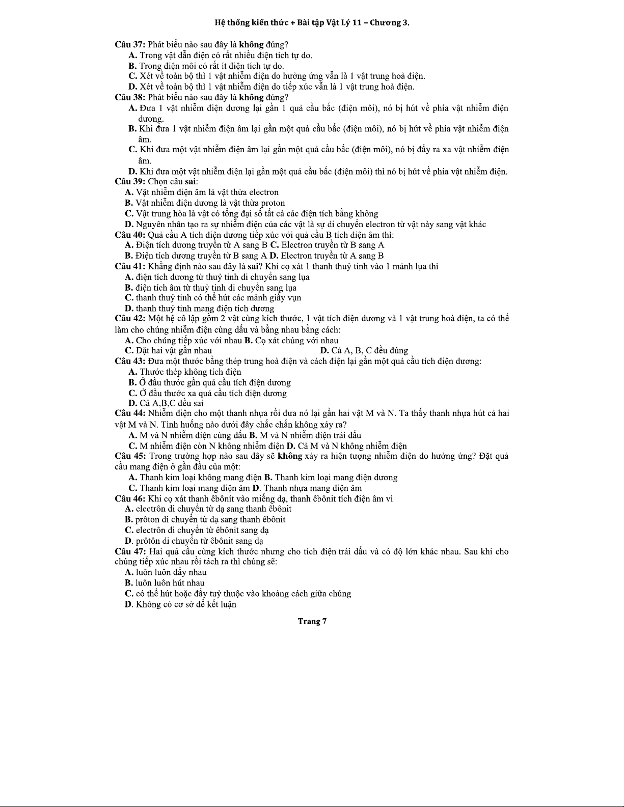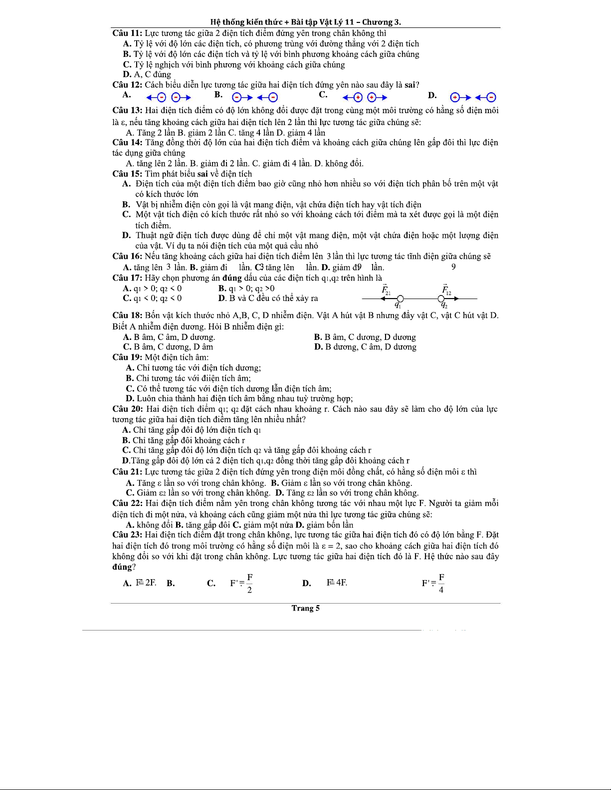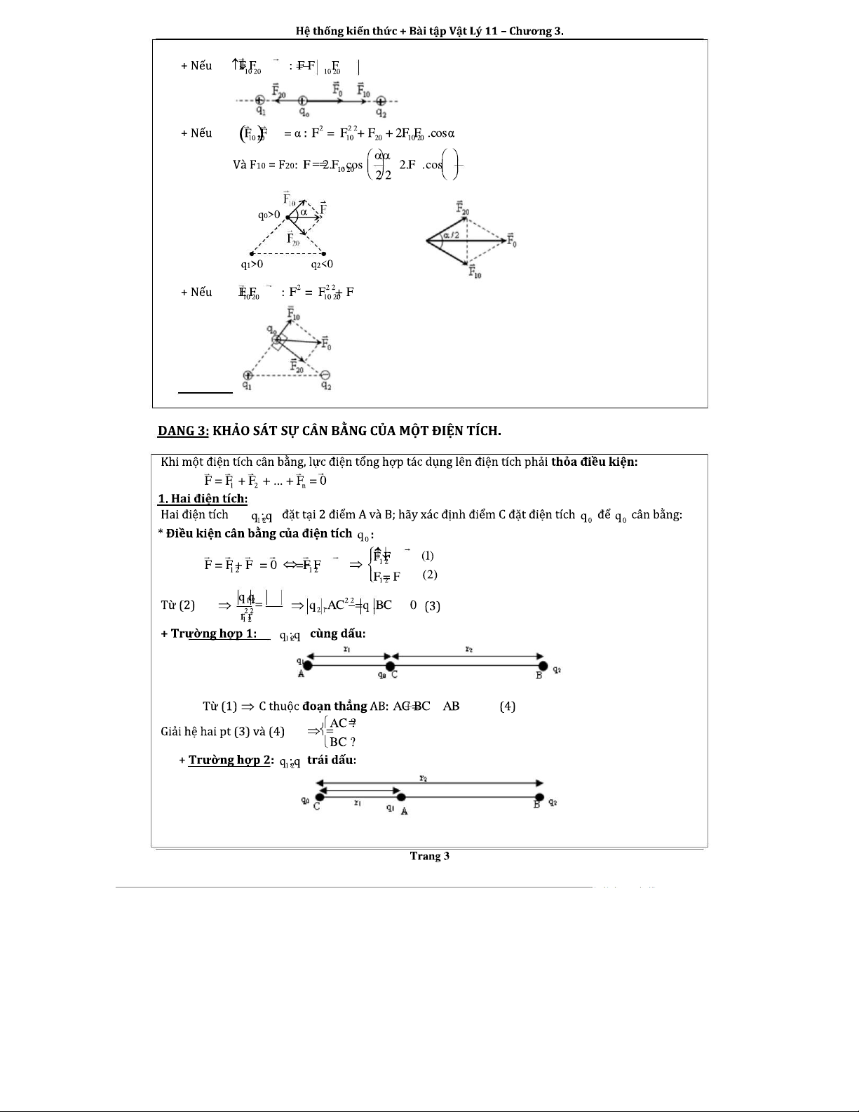 LỰC TƯƠNG TÁC GIỮA CÁC ĐIỆN TÍCH - CHƯƠNG 3: LÝ THUYẾT VÀ BÀI TẬP
