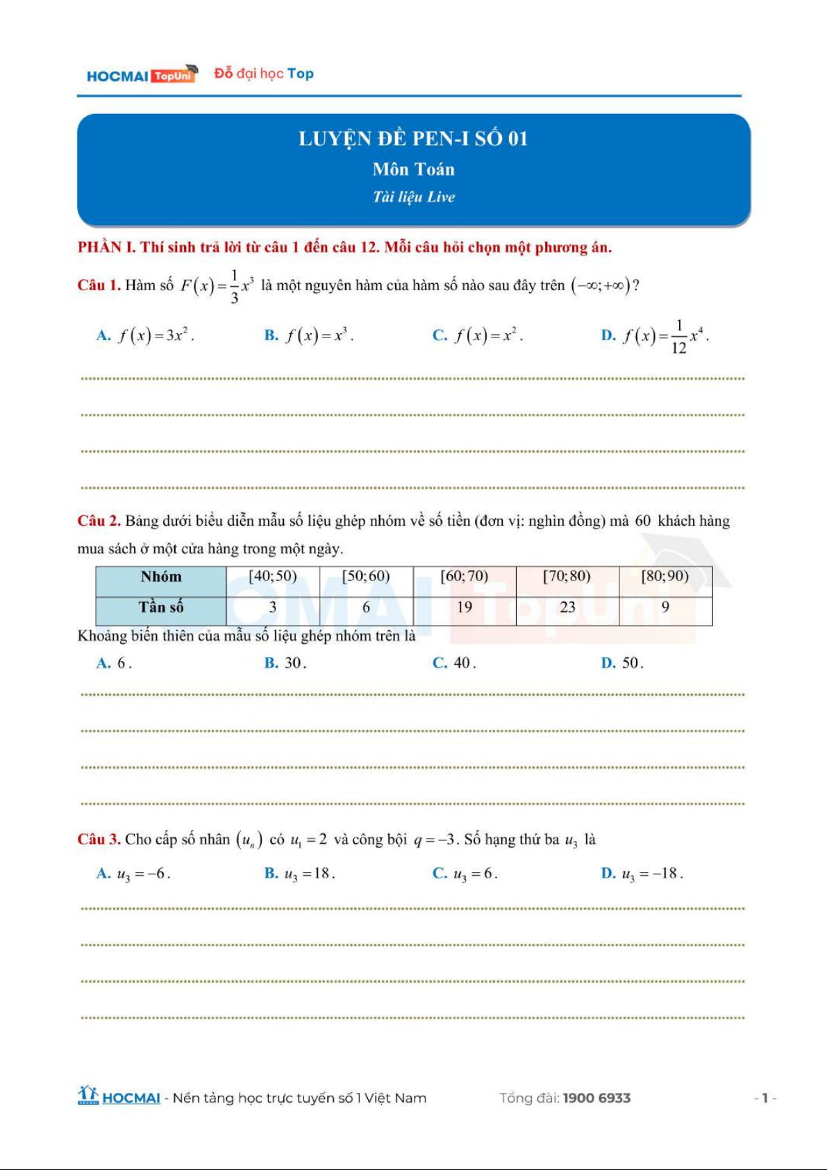 Luyện đề ôn toán thi THPT lớp 12. Tài liệu giúp bạn tham khảo, ôn tập và đạt kết quả cao. Mời đọc đón xem!