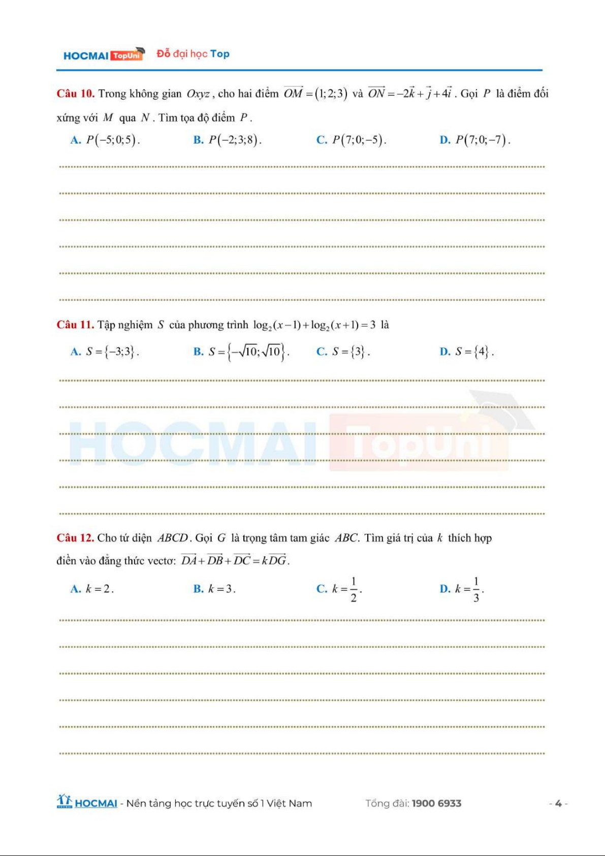Luyện đề ôn toán thi THPT lớp 12