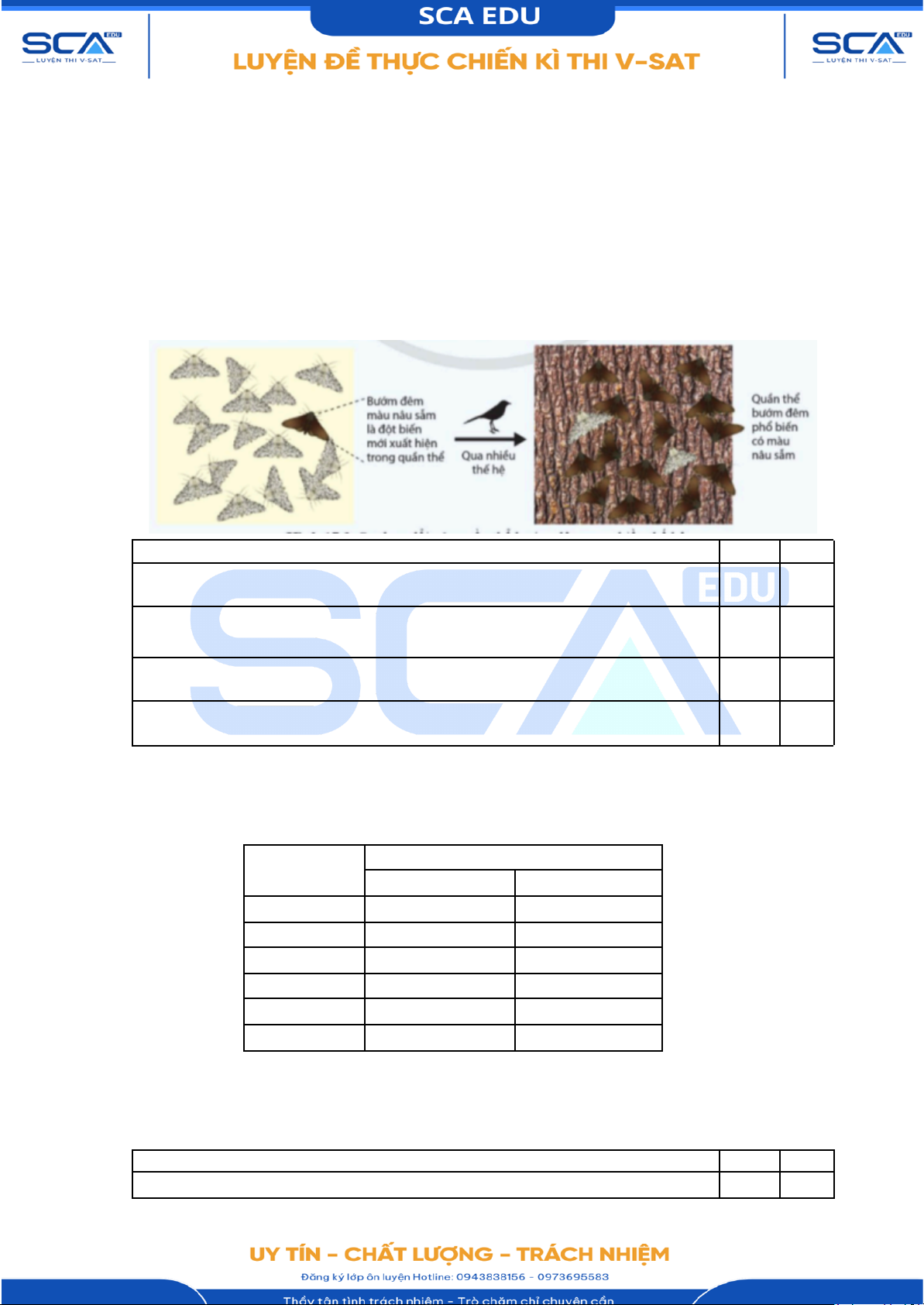 Câu 1. Một quần thể bướm đêm trong khu rừng nhiệt đới với nhiều cây bạch dương có thân